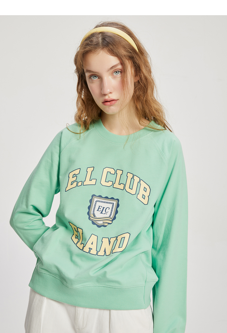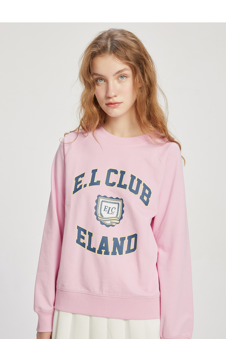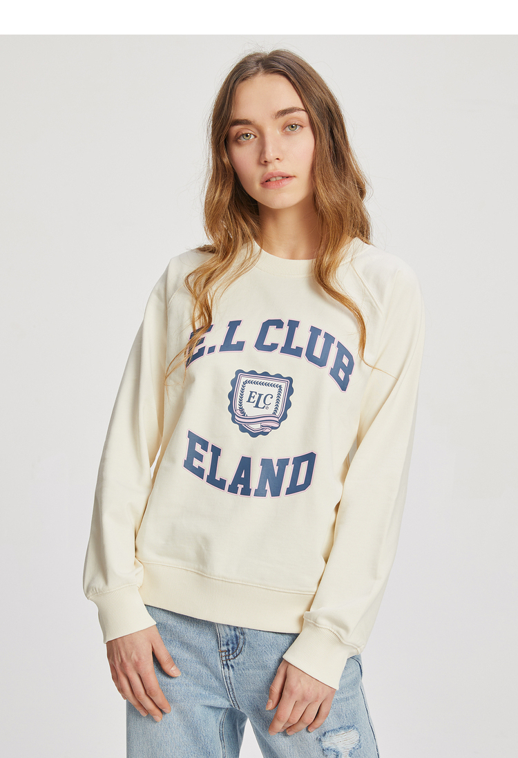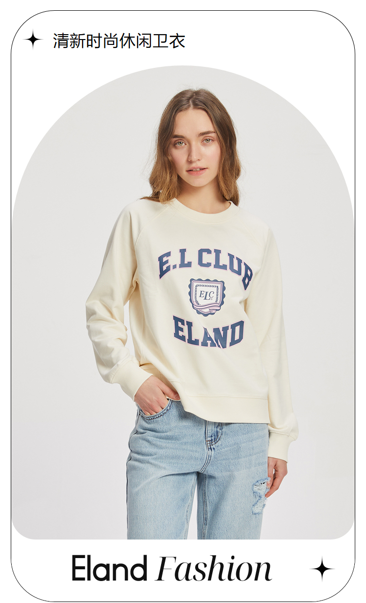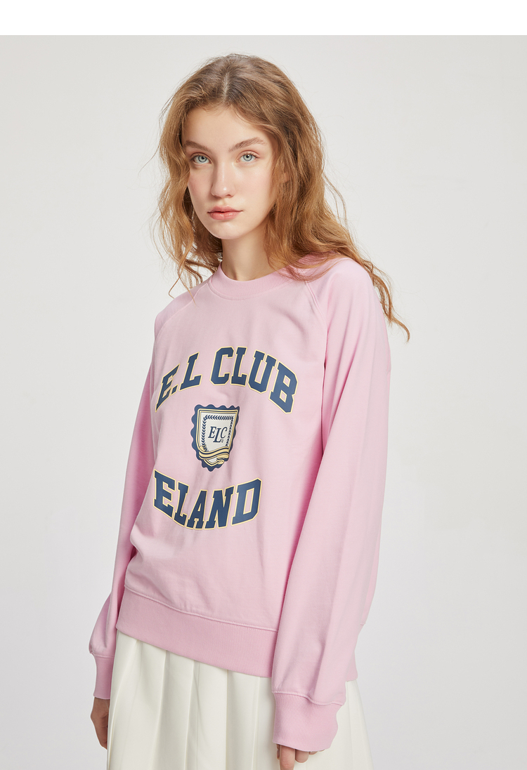 ELAND衣恋2022年春季新款清新时尚宽松休闲字母印花圆领卫衣女EEMTC23Q1N