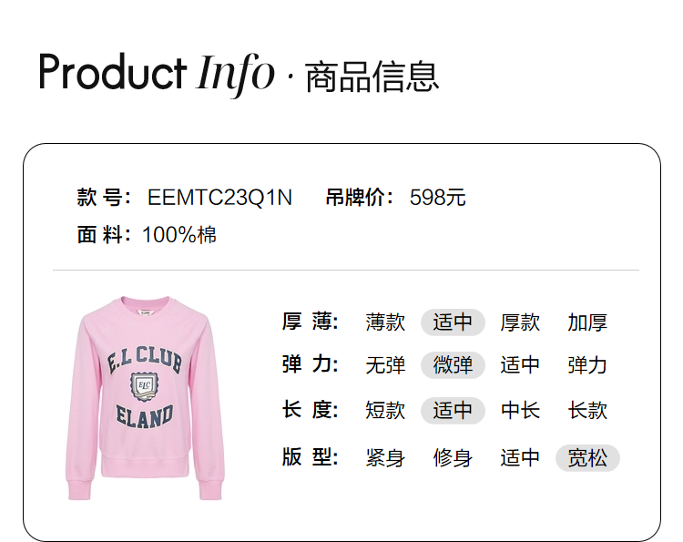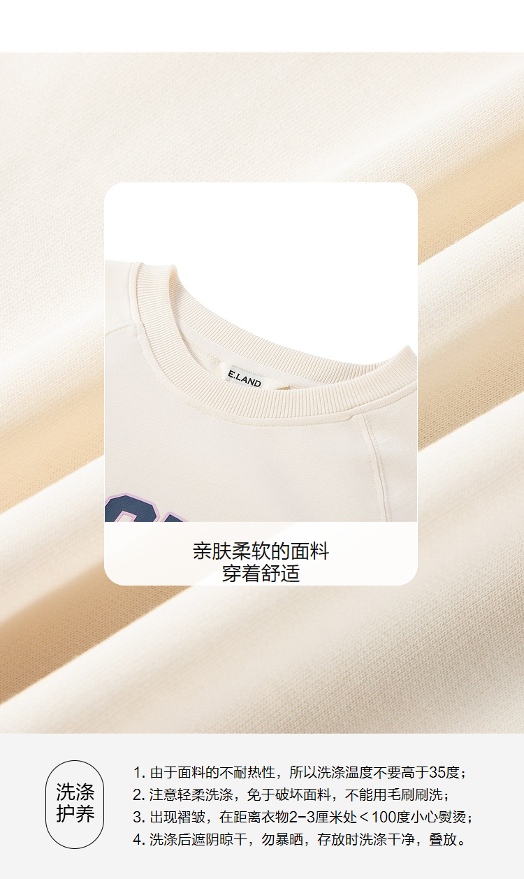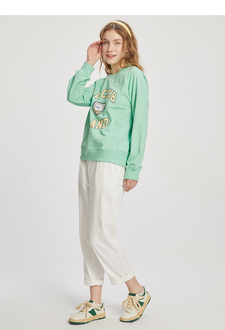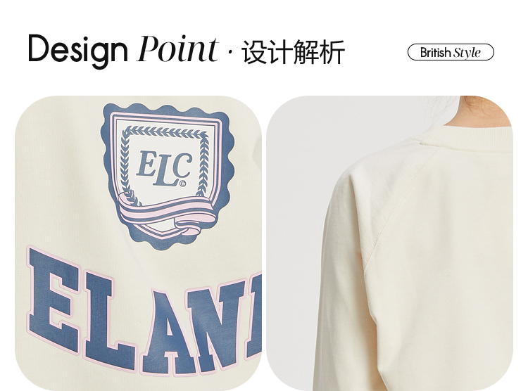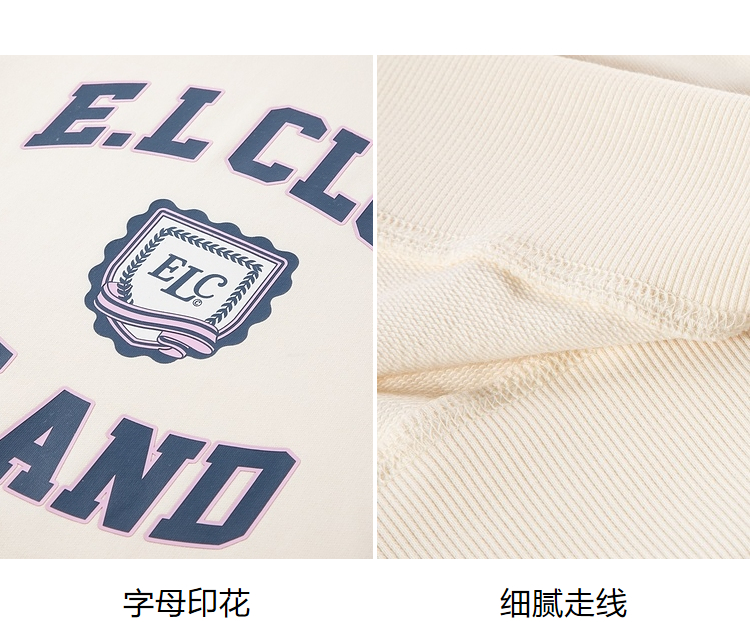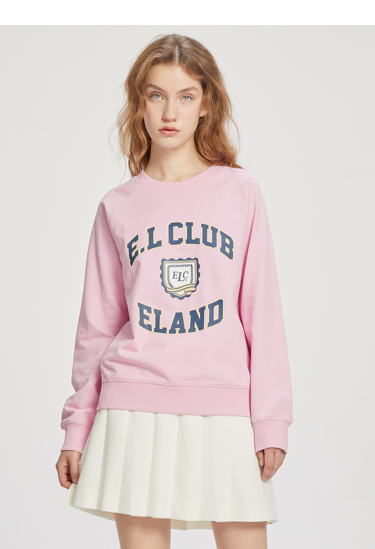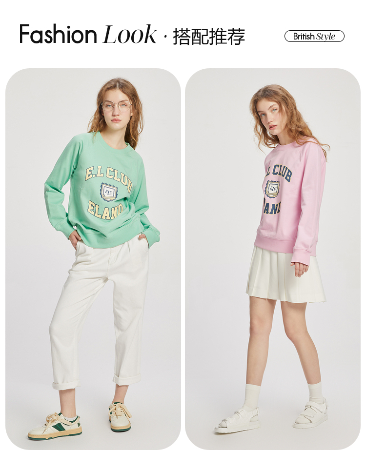ELAND衣恋2022年春季新款清新时尚宽松休闲字母印花圆领卫衣女EEMTC23Q1N