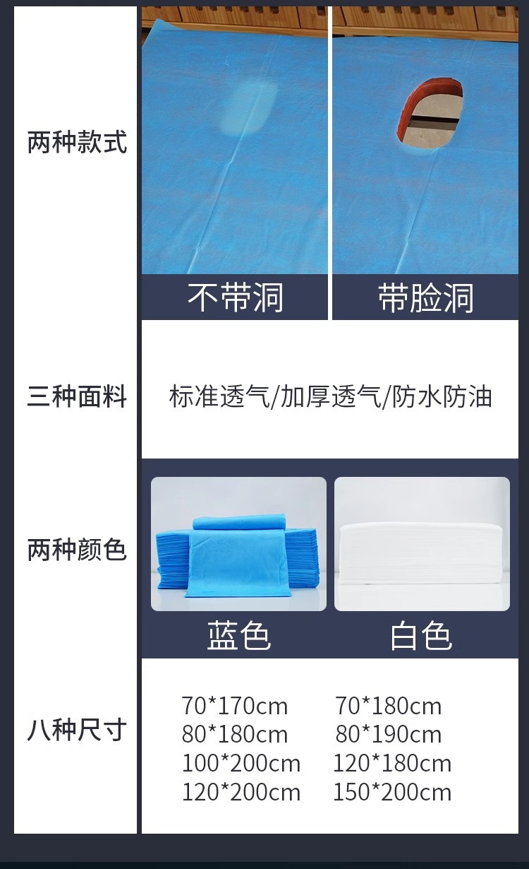 加大加厚防水防油一次性床单美容院专用超划算美容床专用床单打孔