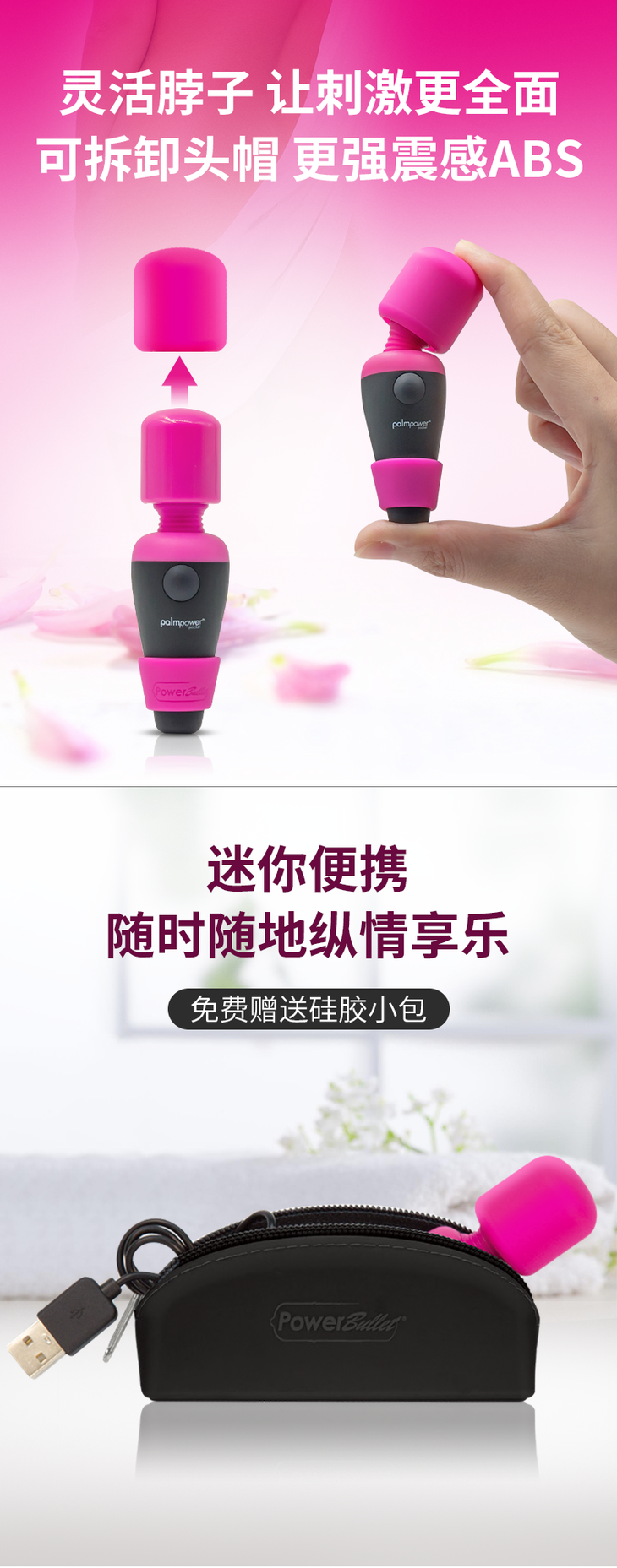 加拿大 Palmpower 女用迷你随身携带AV棒震感震动防水旅行便携震动棒
