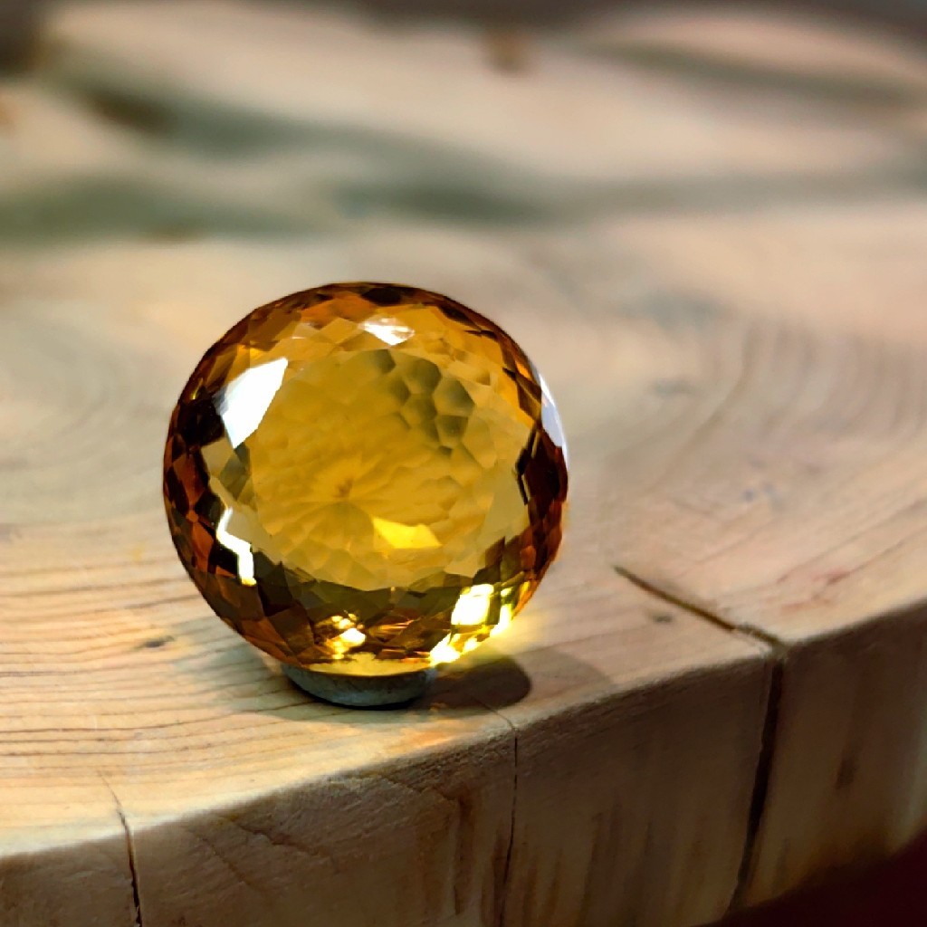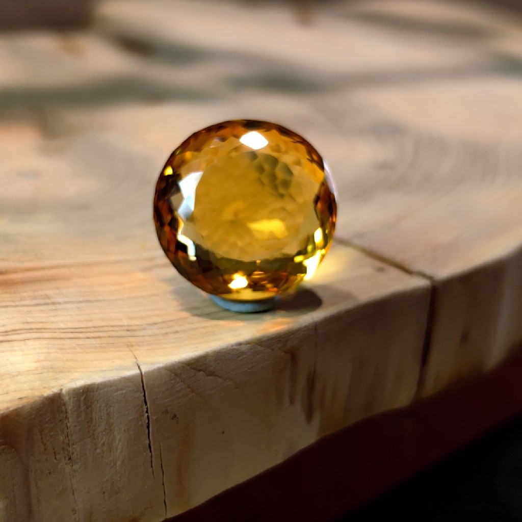 这是一件拥有偏财功效的,重20.38ct的,天然彩宝~黄水晶戒面。