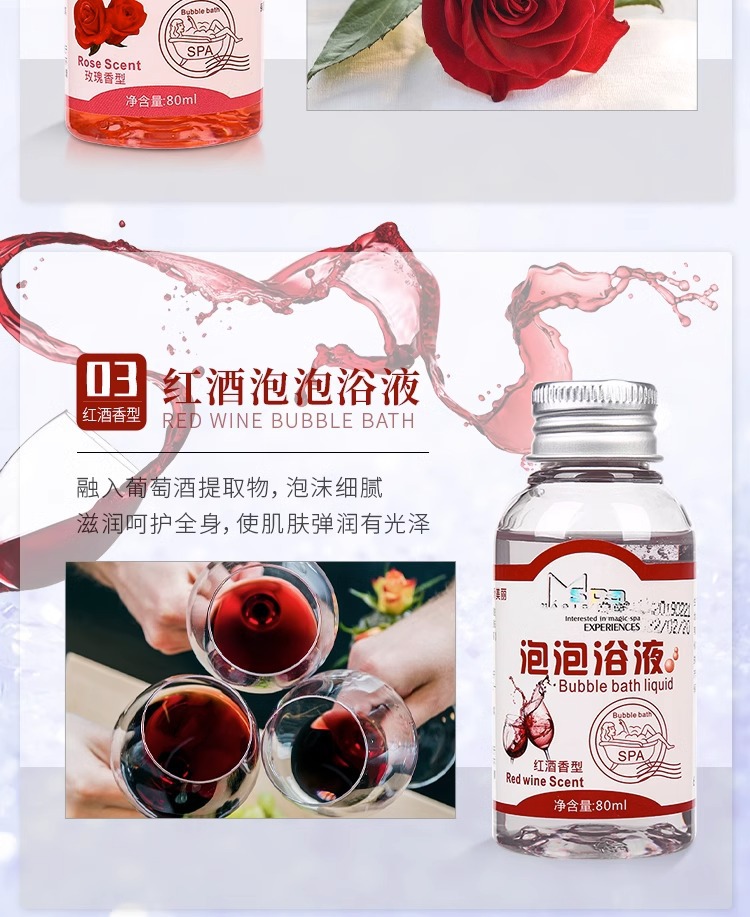 牛奶泡泡浴红酒泡泡沐浴液酒店儿童泡澡沐浴液便携沐浴露厂家批发