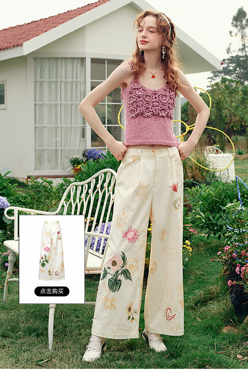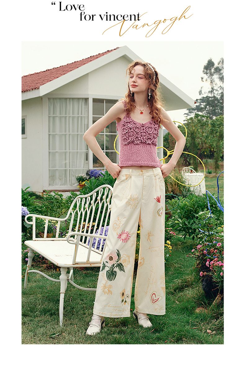两三事梵高文艺 赭谣漫信 2025秋季新款刺绣纽扣装饰阔腿休闲裤女
