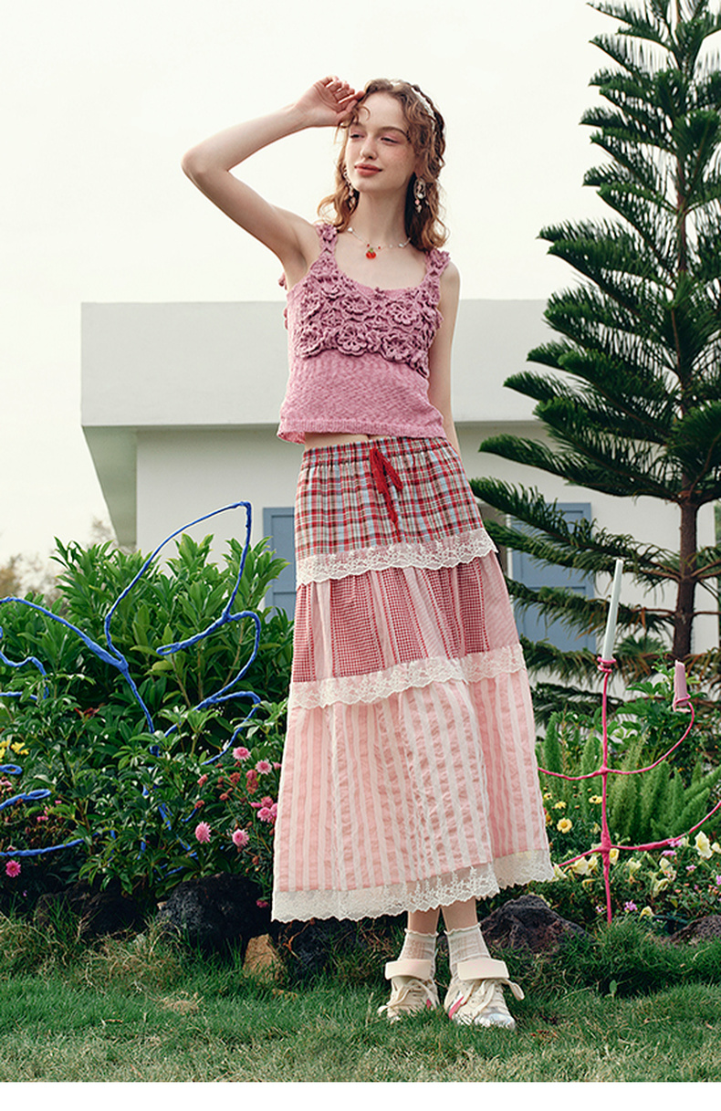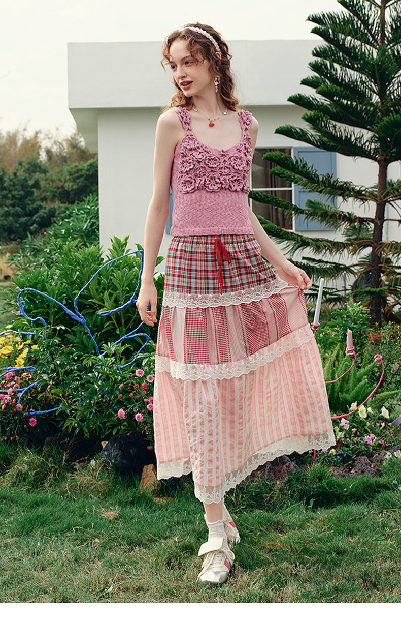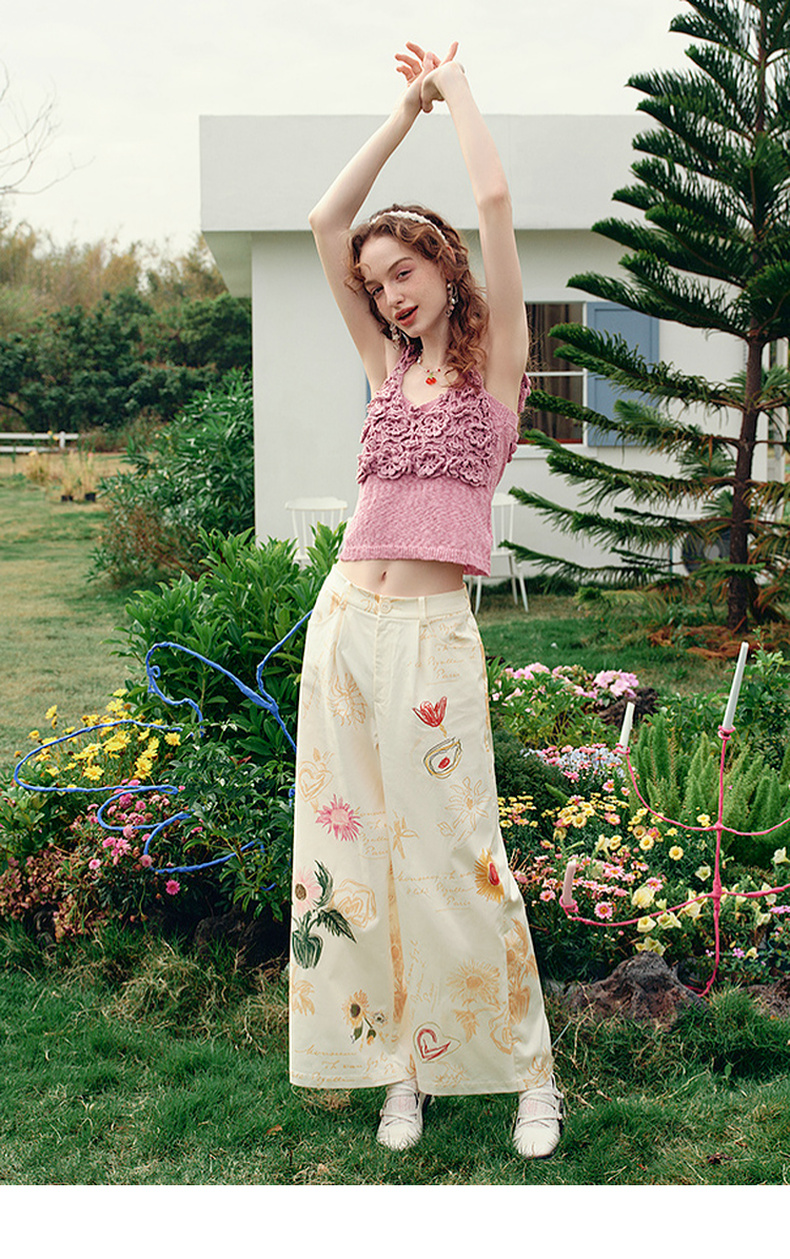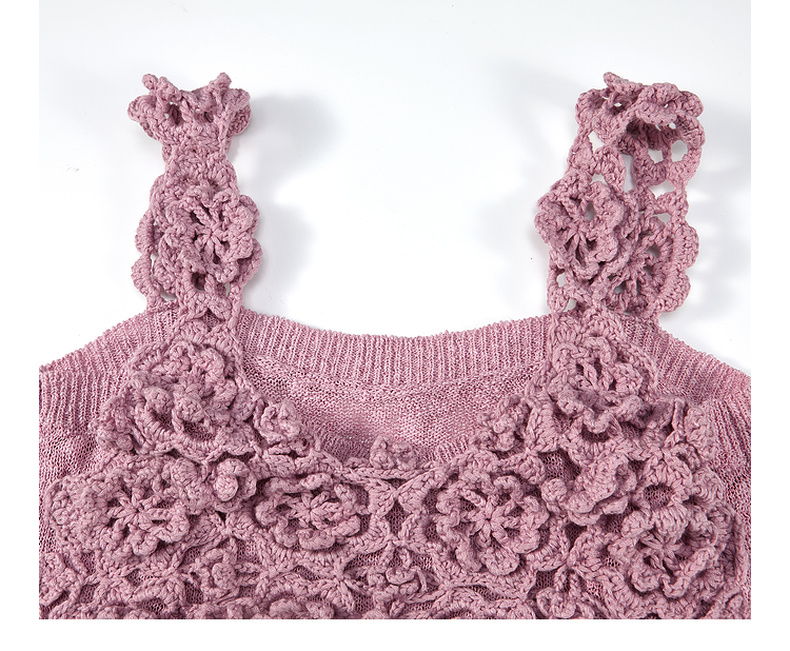 两三事梵高文艺樱色花簇2025夏季新款甜美立体手钩花吊带针织衫女