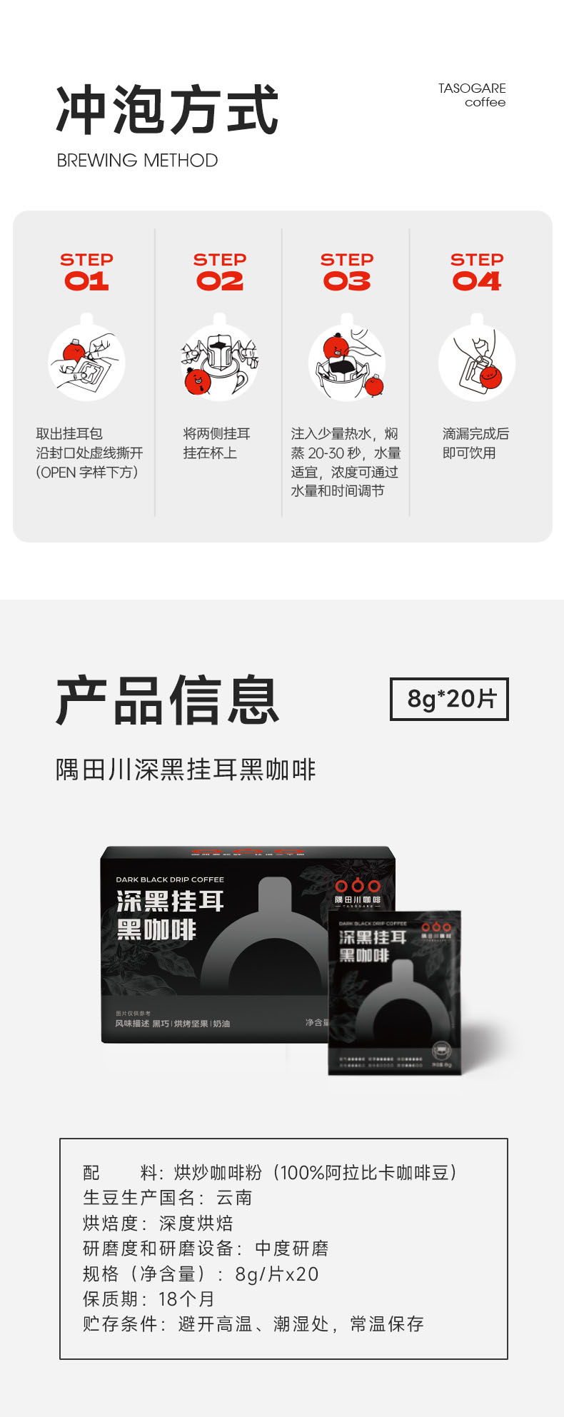 【挂耳咖啡】隅田川深黑挂耳现磨手冲黑咖啡8g*20片