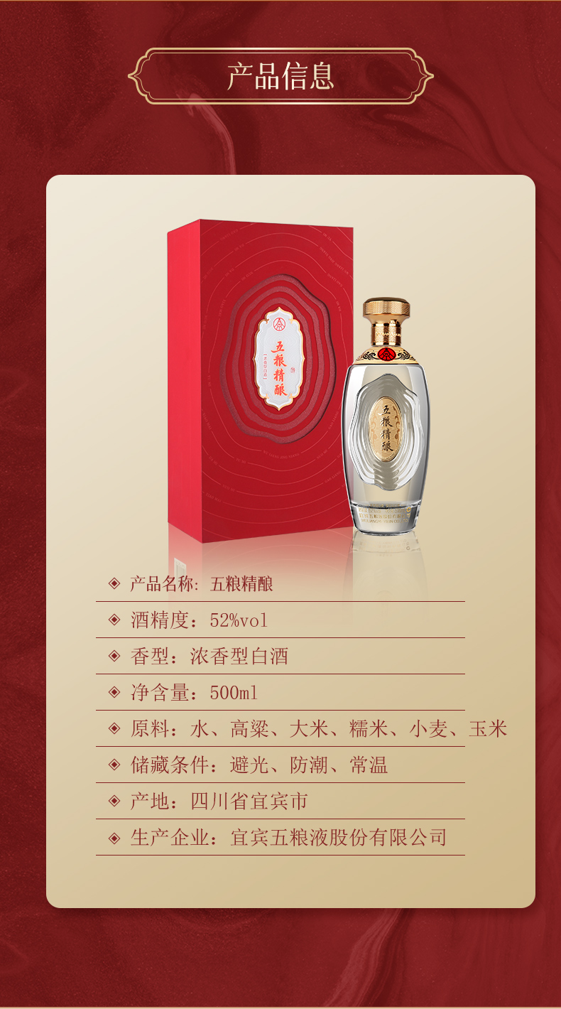 五粮液股份 送礼佳品 五粮精酿珍酿 浓香型固态法白酒 52度500ml*6瓶