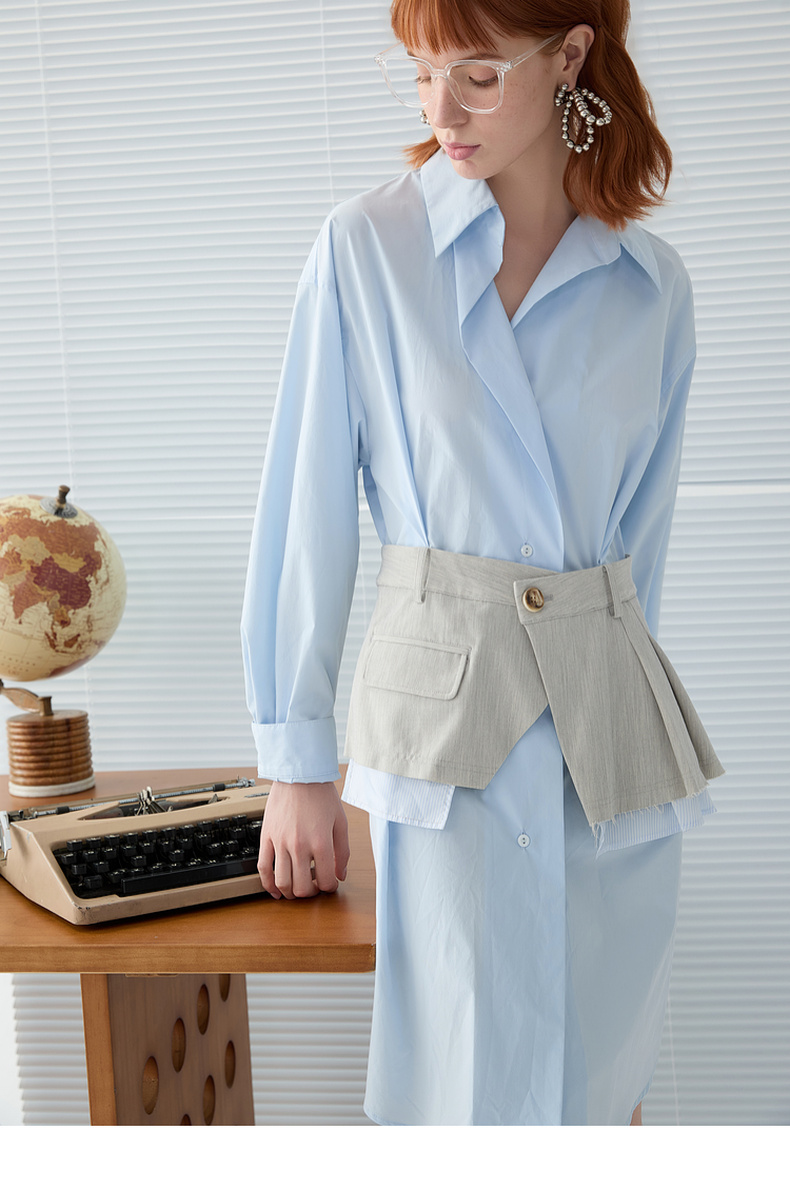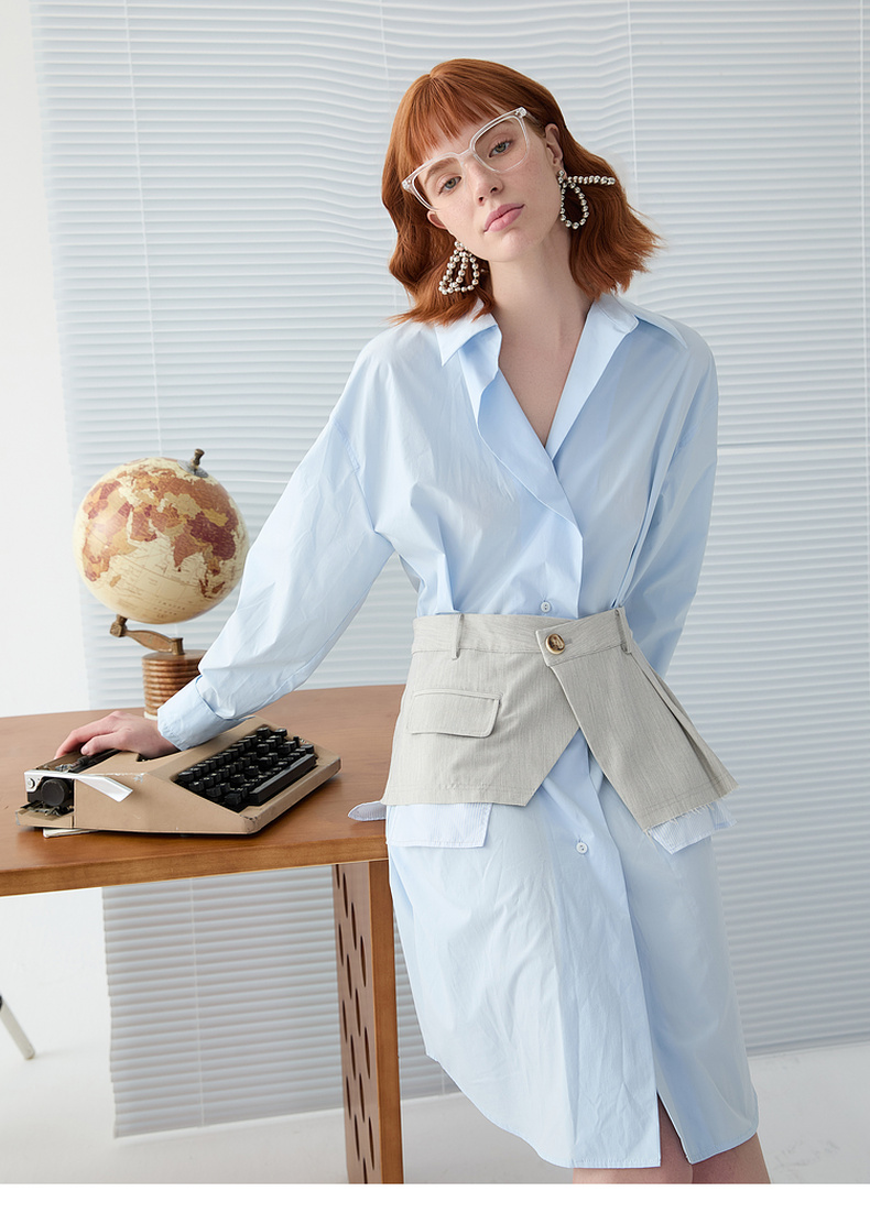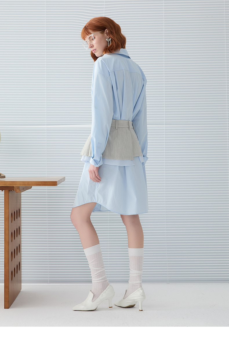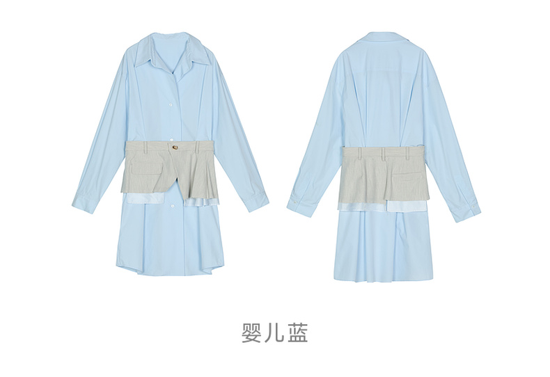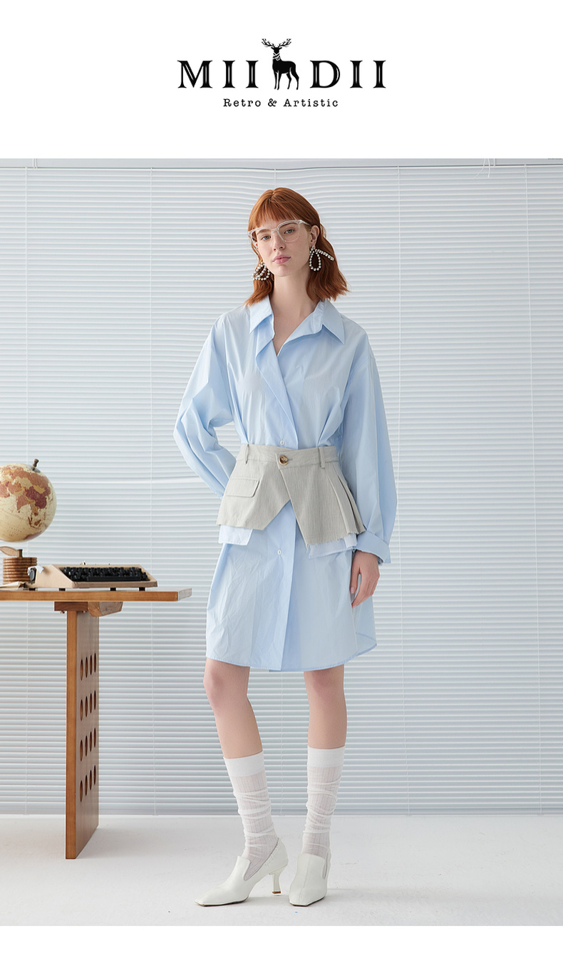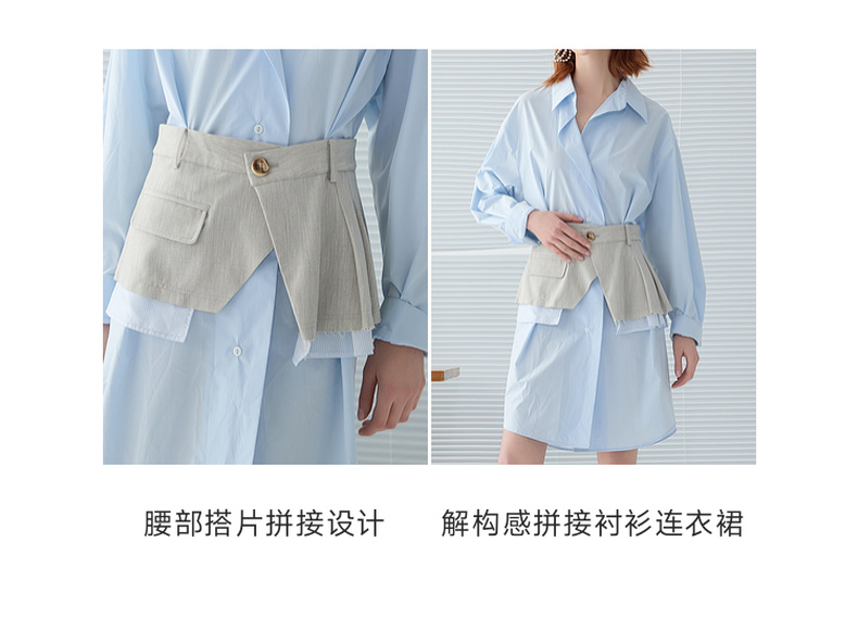 谜底衬衫式连衣裙长袖2025春新品通勤风解构感拼接裙子251ML0061