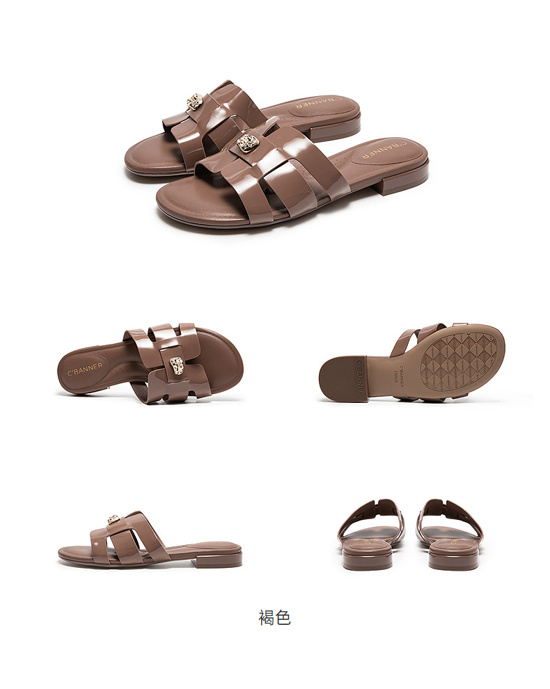 【静音系列】千百度平底露趾一字拖女款外穿凉拖鞋A25351277