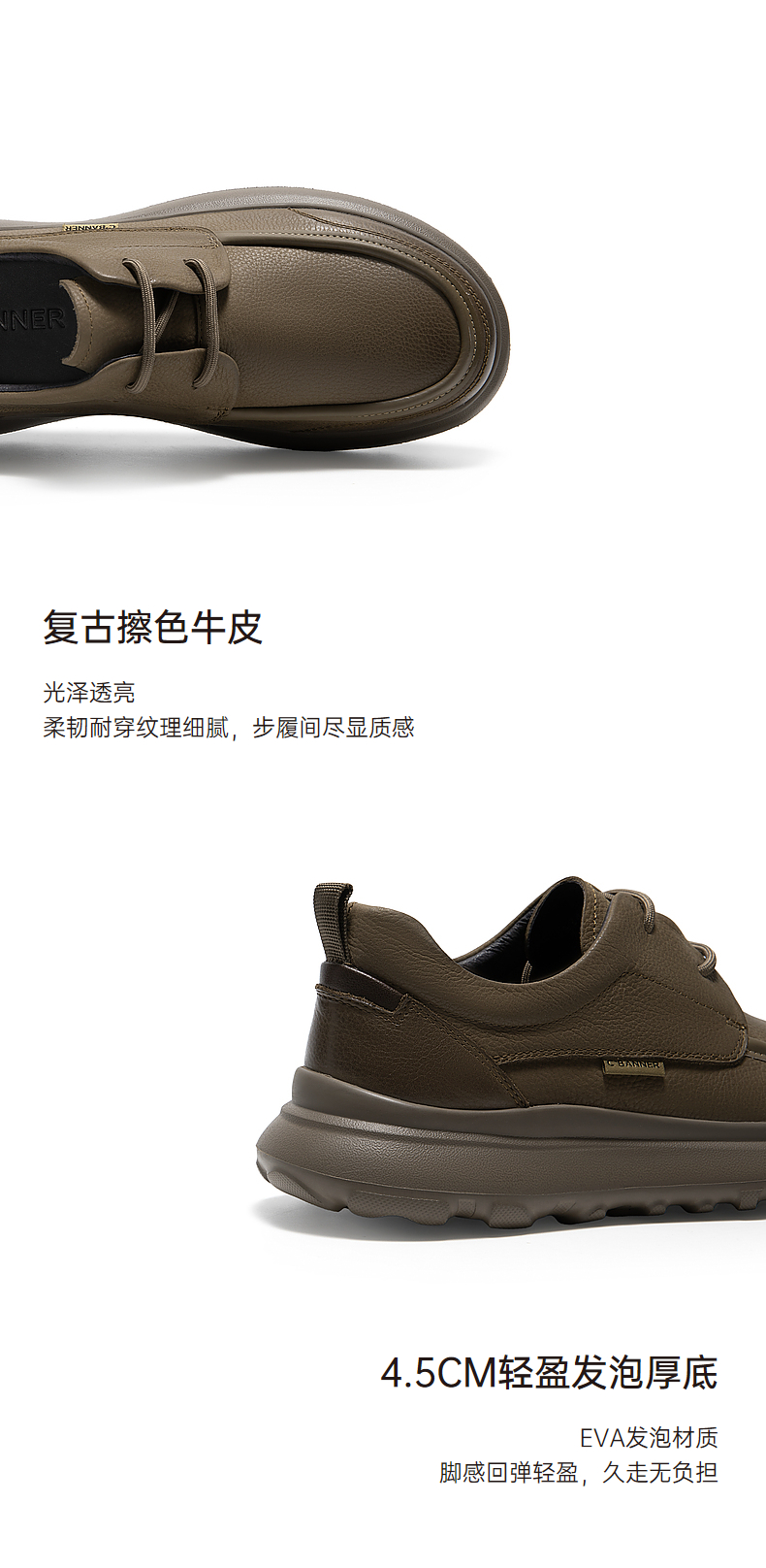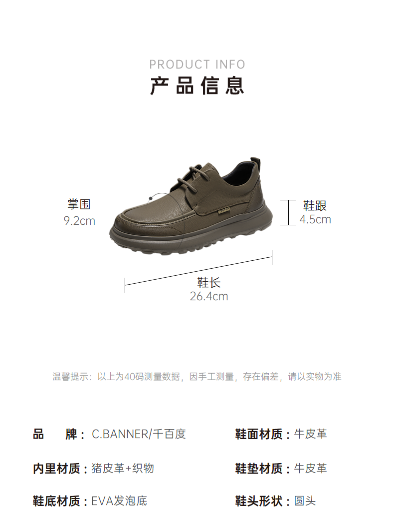 千百度男鞋轻便厚底增高休闲皮鞋春季百搭乐福鞋真皮商务皮鞋A24485718