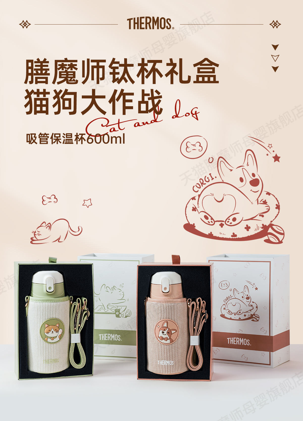 【THERMOS膳魔师】猫狗大作战钛杯礼盒