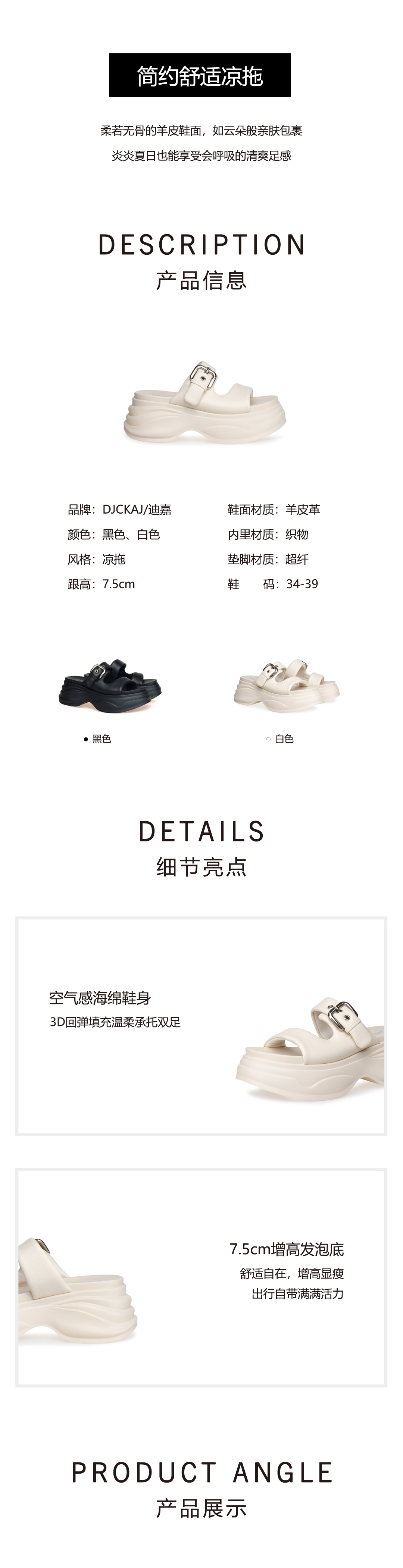 豪麟名鞋奥莱迪嘉女鞋凉拖羊皮革DJMEO51WL205黑色 原价1660元
