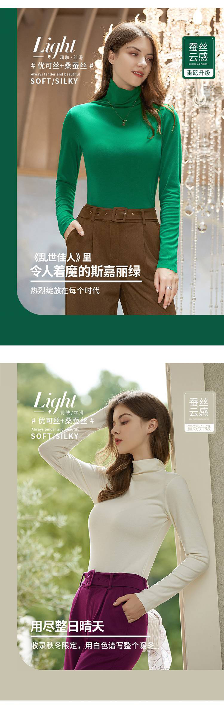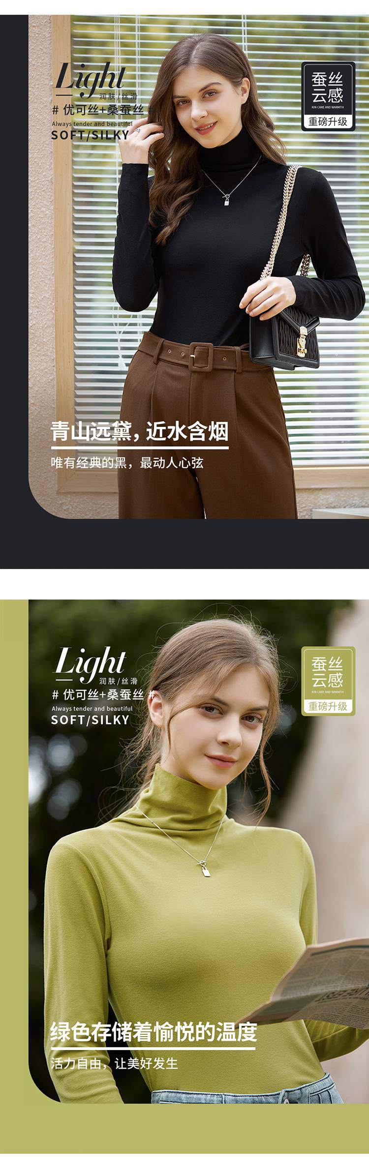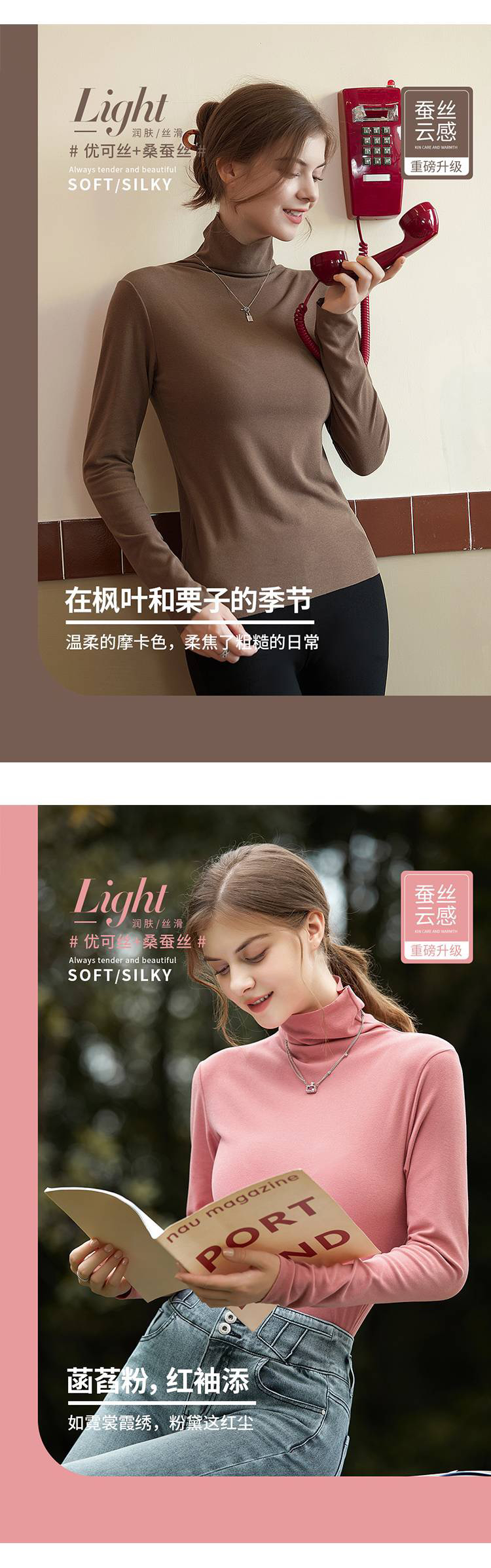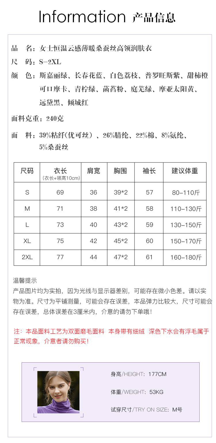 女款德绒4.0版蚕丝恒温衣(高领)