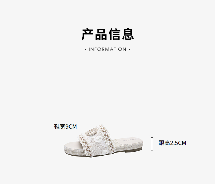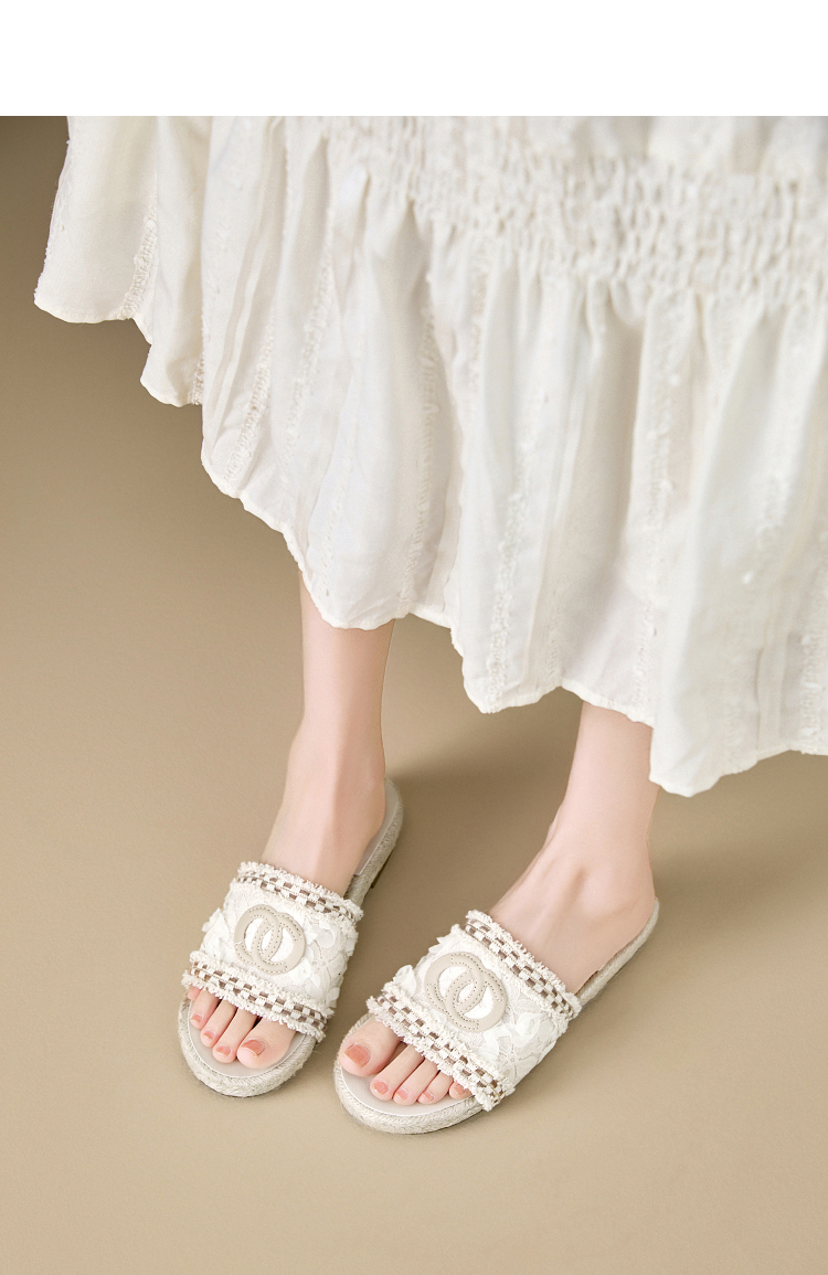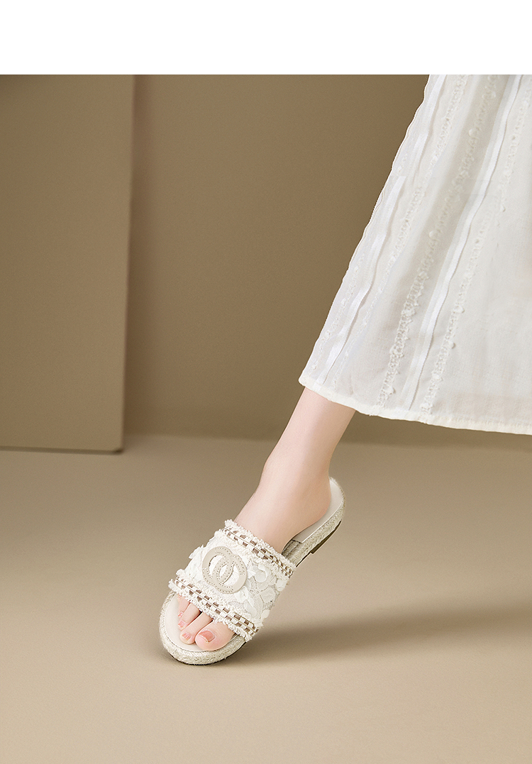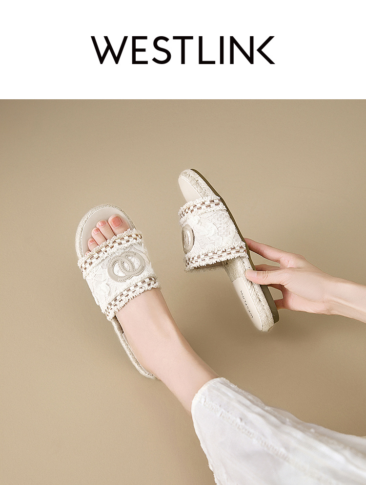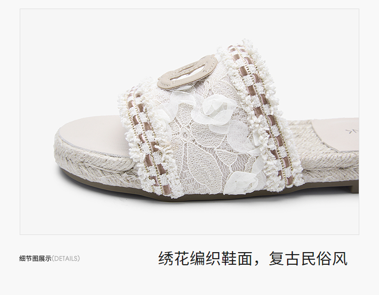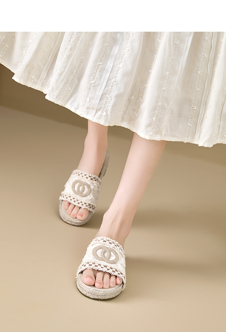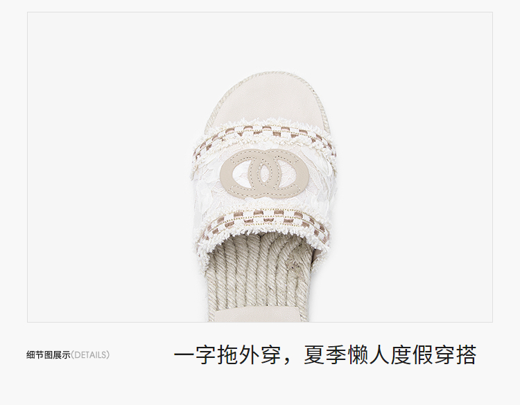 西遇小香风凉拖鞋女夏外穿新款法式一脚蹬草编渔夫鞋平底凉鞋V0056885