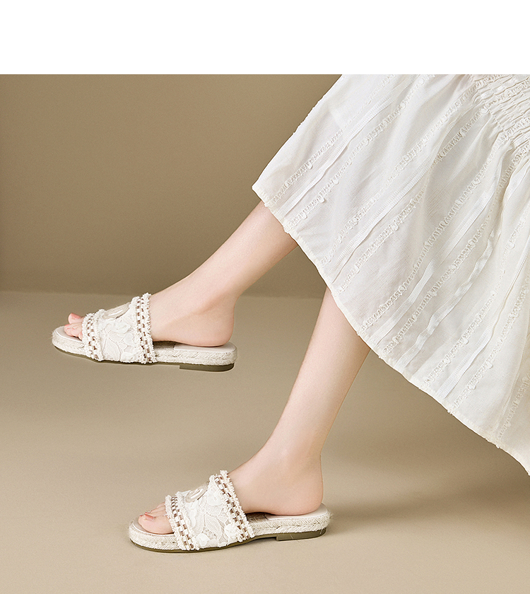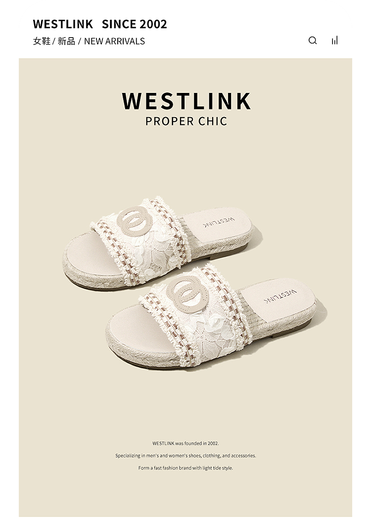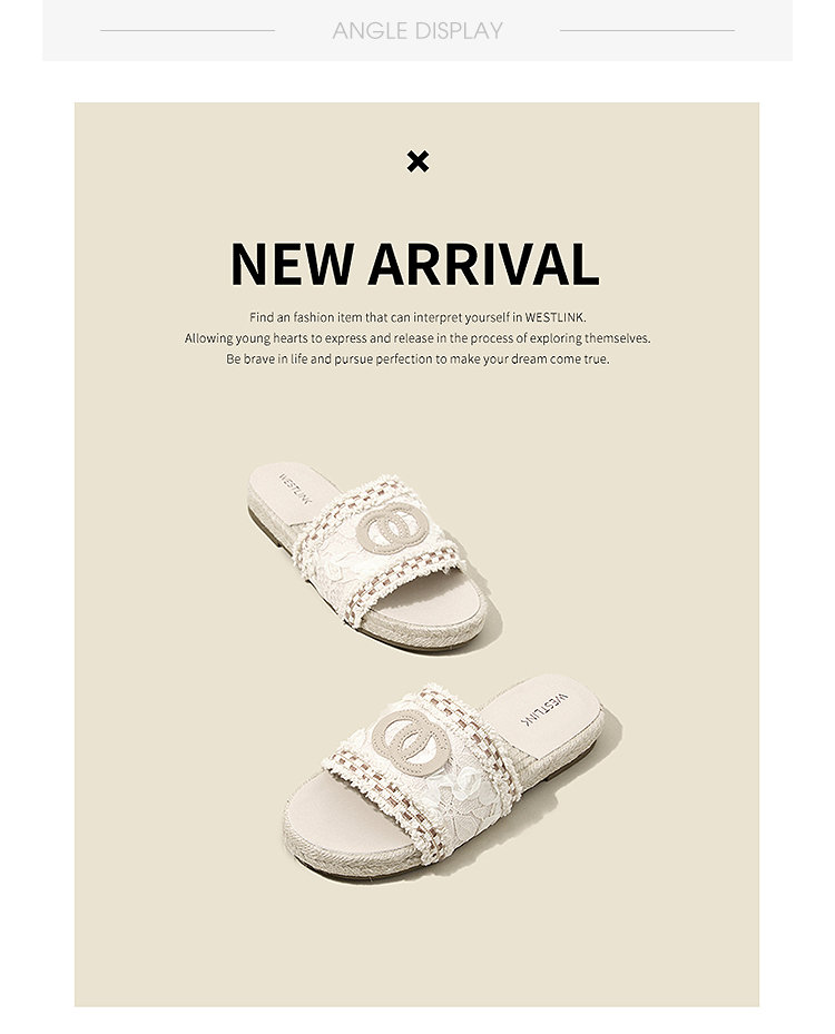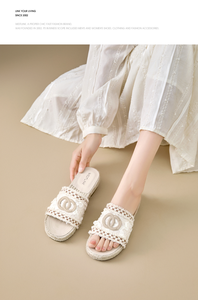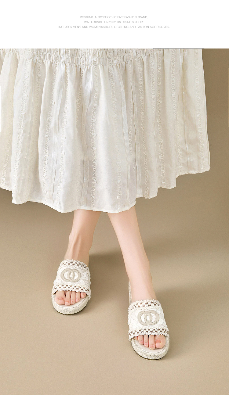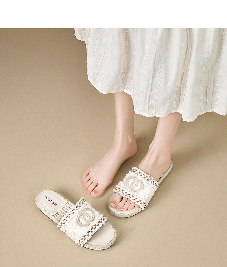 西遇小香风凉拖鞋女夏外穿新款法式一脚蹬草编渔夫鞋平底凉鞋V0056885