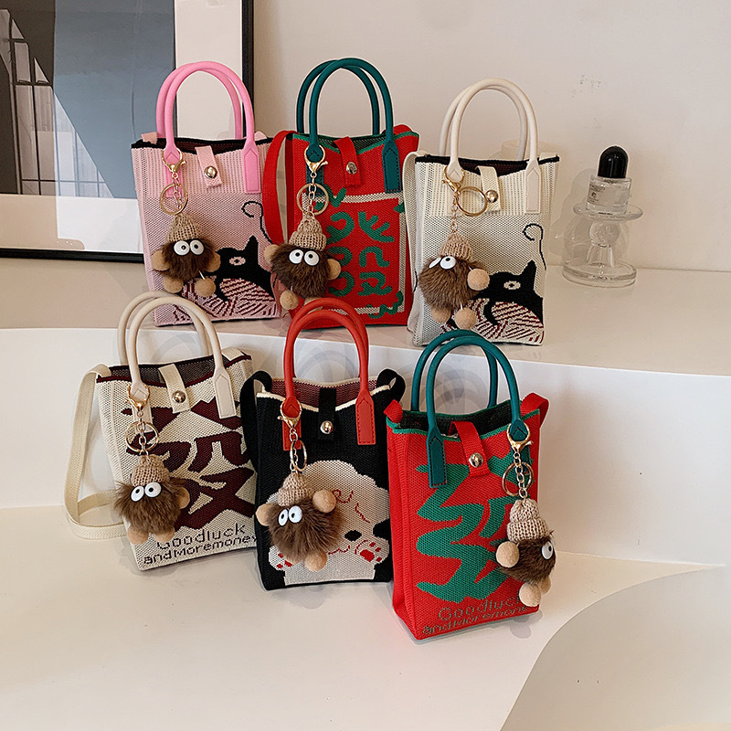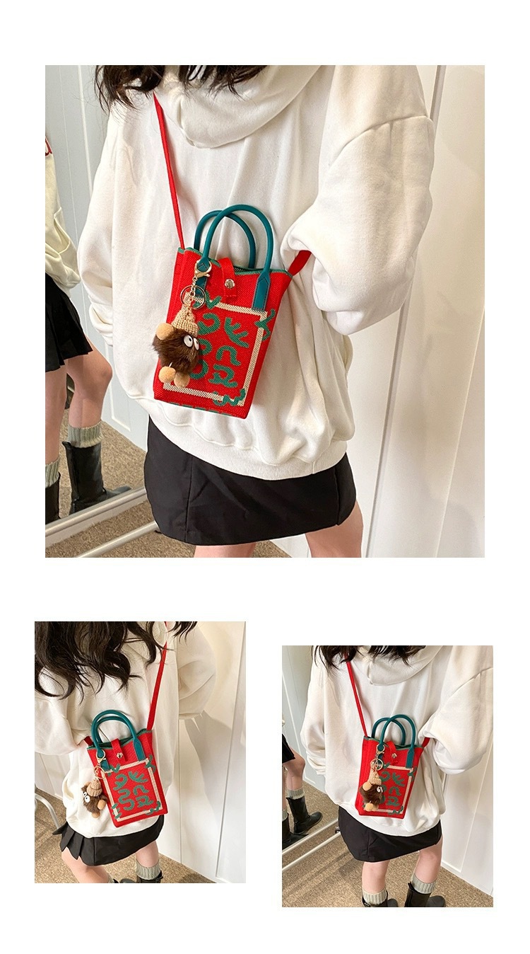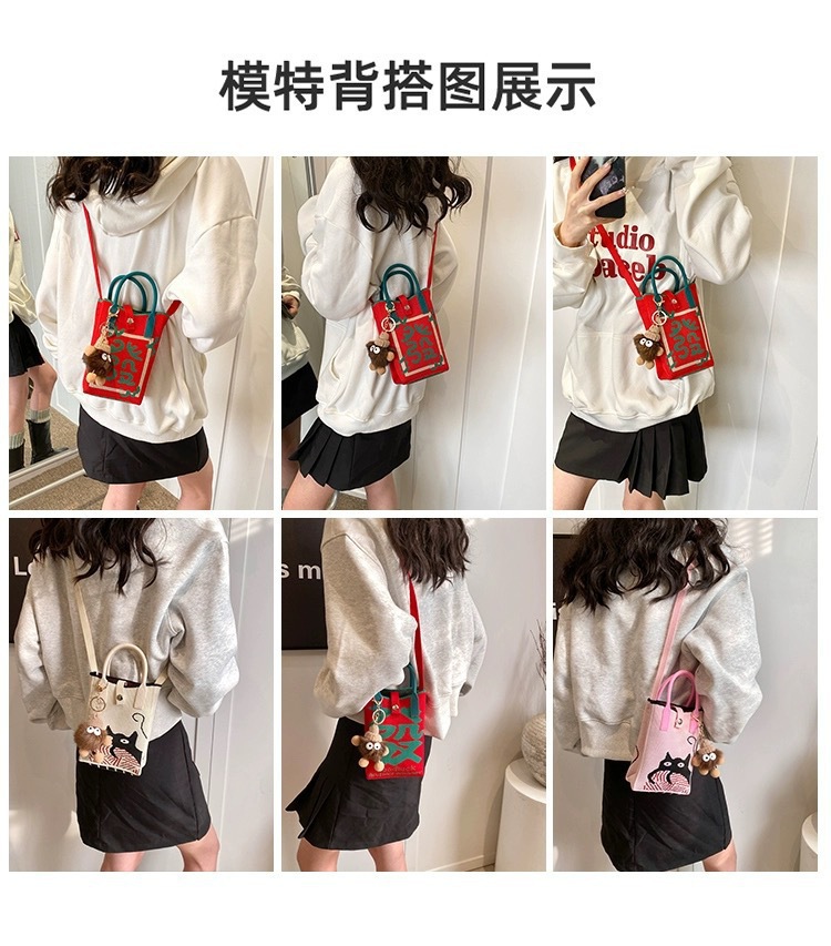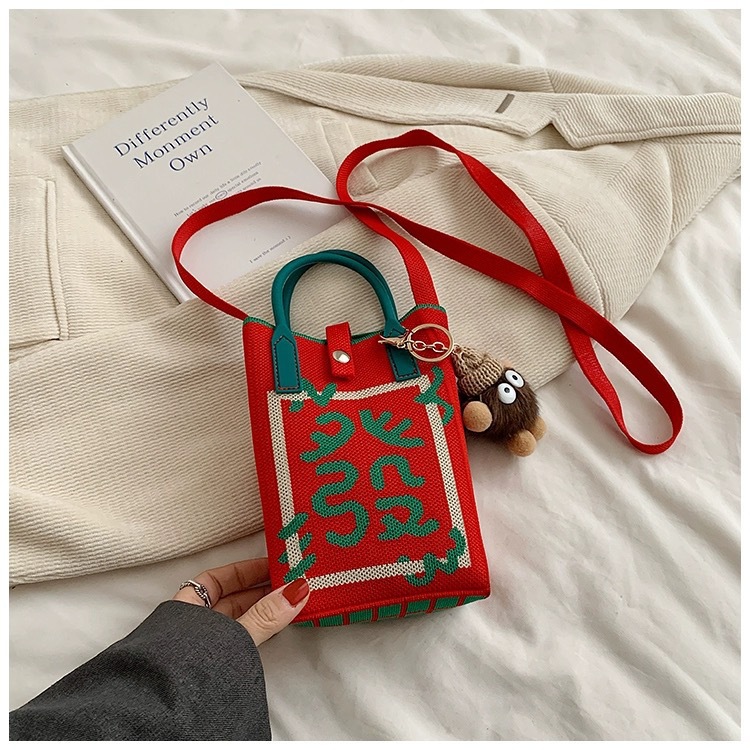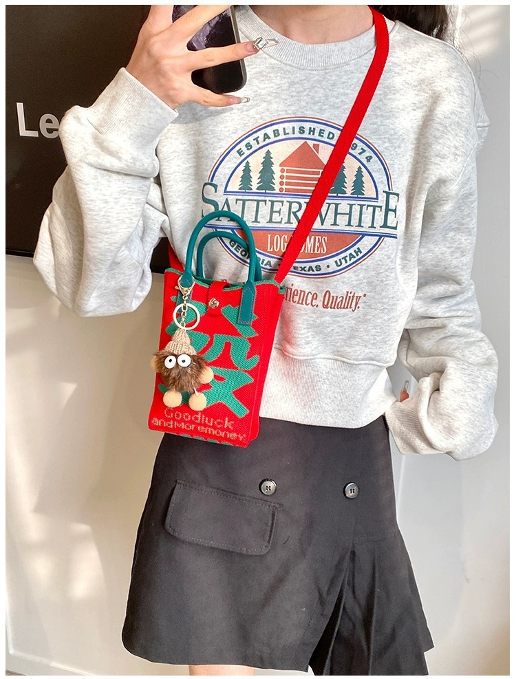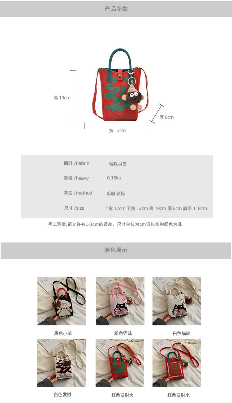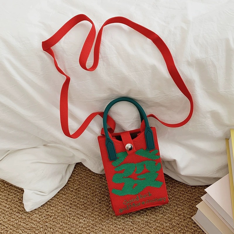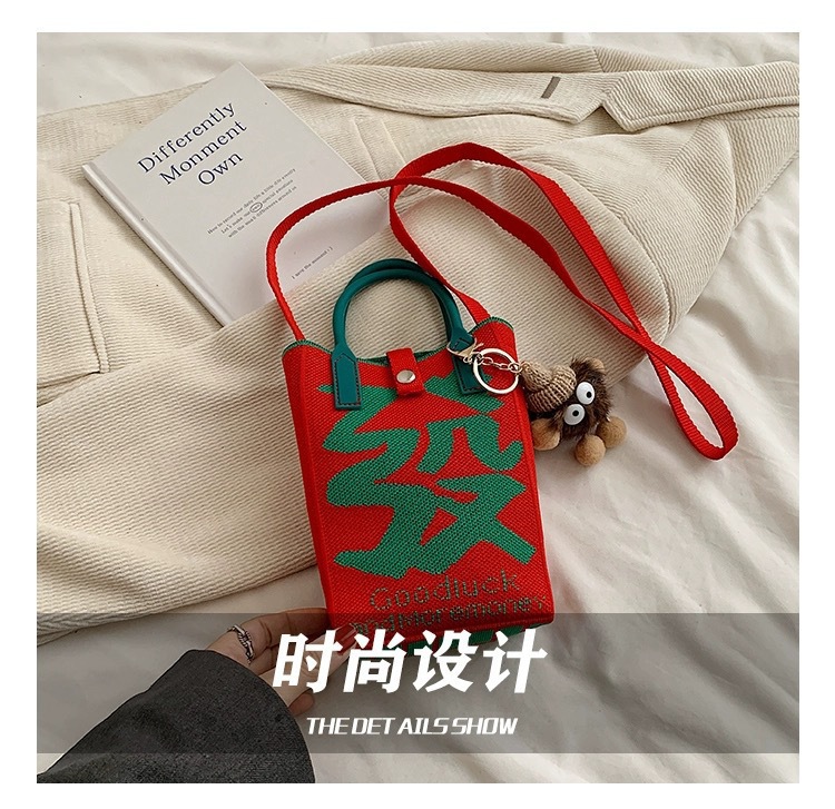 【新年针织发财包!拍下送萌趣挂件】新年红色中式喜庆卡通手机包 发财针织手提包 百搭便携零钱斜跨包