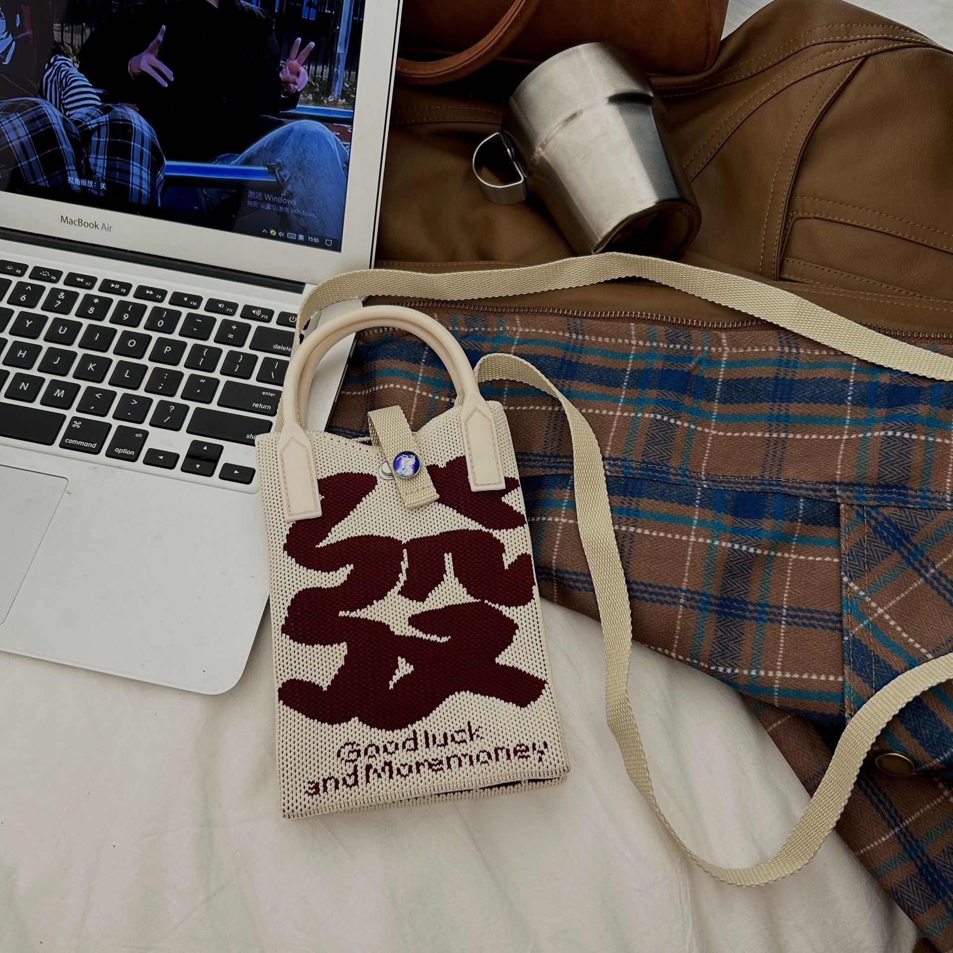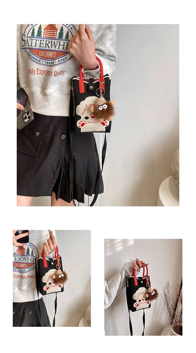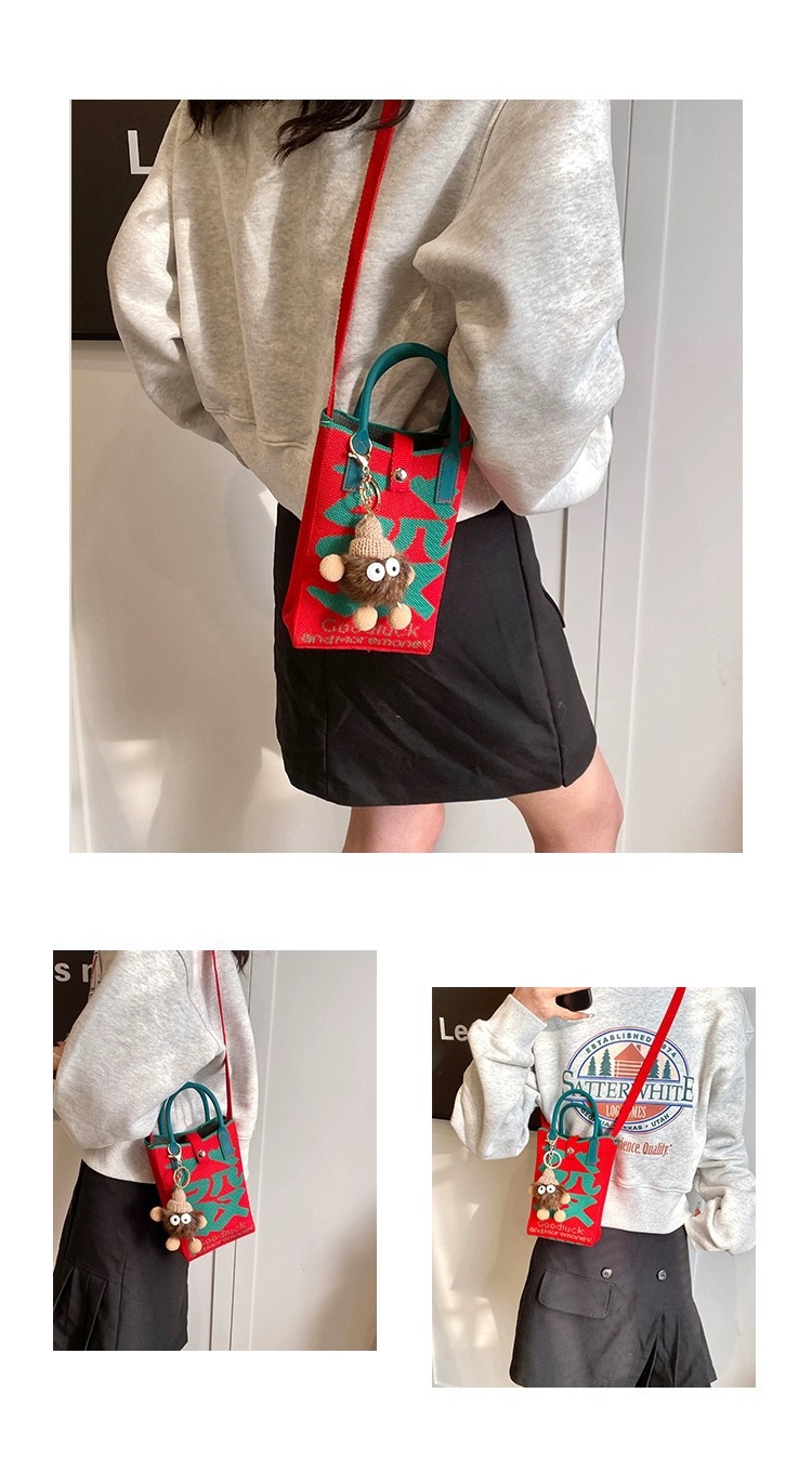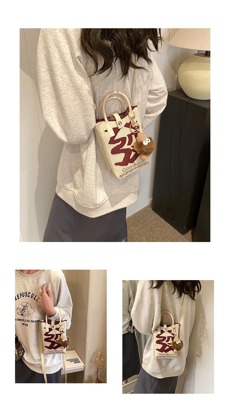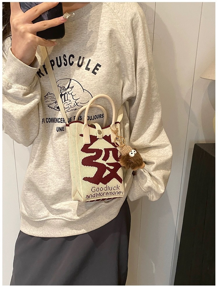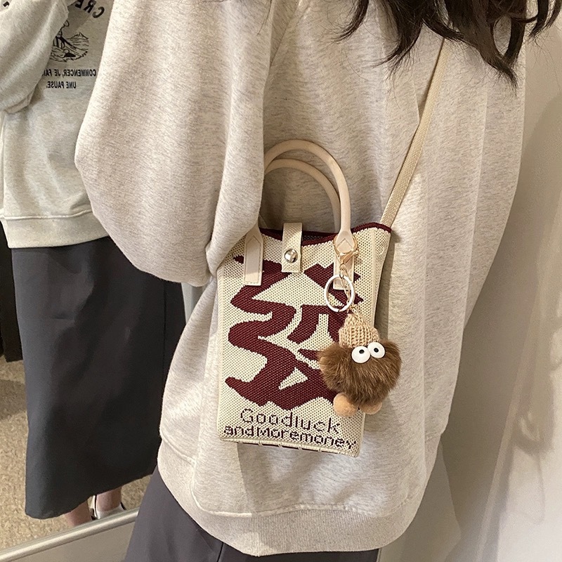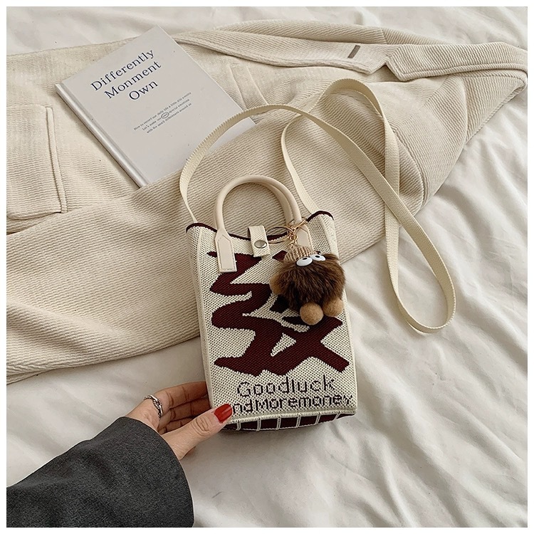【新年针织发财包!拍下送萌趣挂件】新年红色中式喜庆卡通手机包 发财针织手提包 百搭便携零钱斜跨包