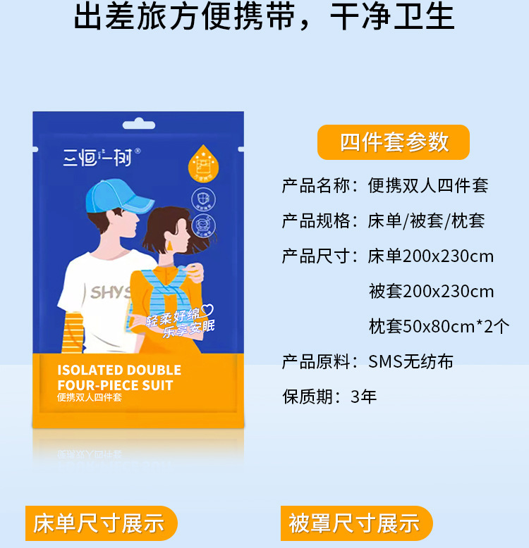 酒店一次性床单被套枕套旅行四件套旅游宾馆便携式单双人隔脏加厚