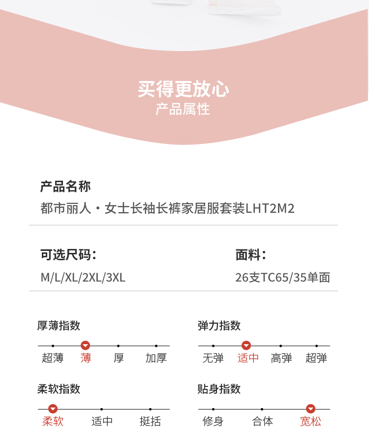 都市丽人睡衣超值精选长袖家居服26支TC65/35单面薄女士棉质套装LHT2M2