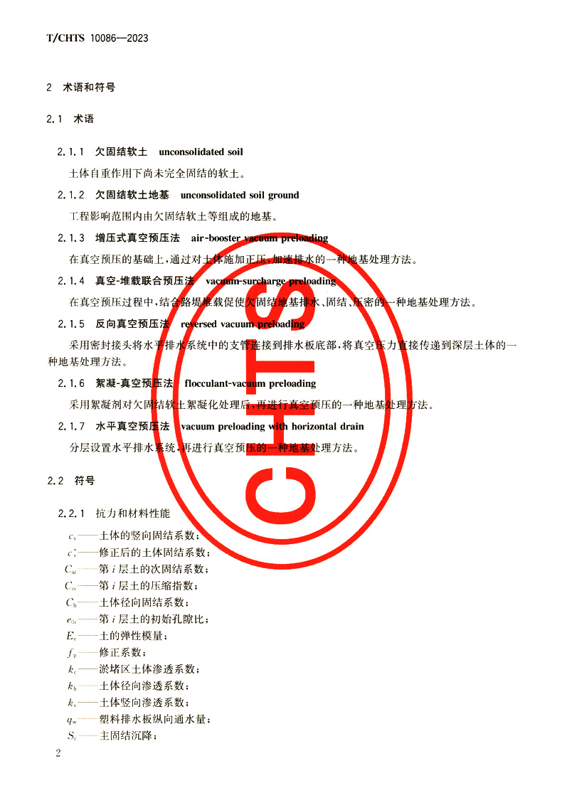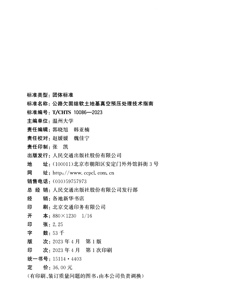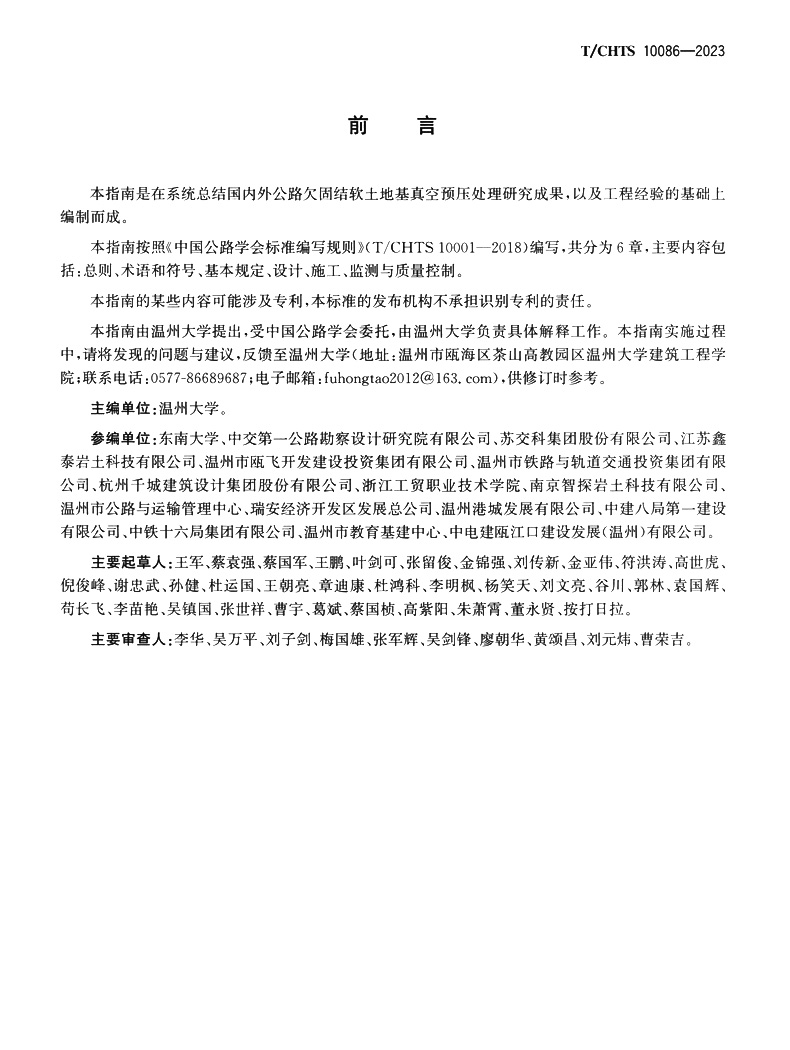 书名:公路欠固结软土地基真空预压处理技术指南(T/CHTS 10086—2023)
