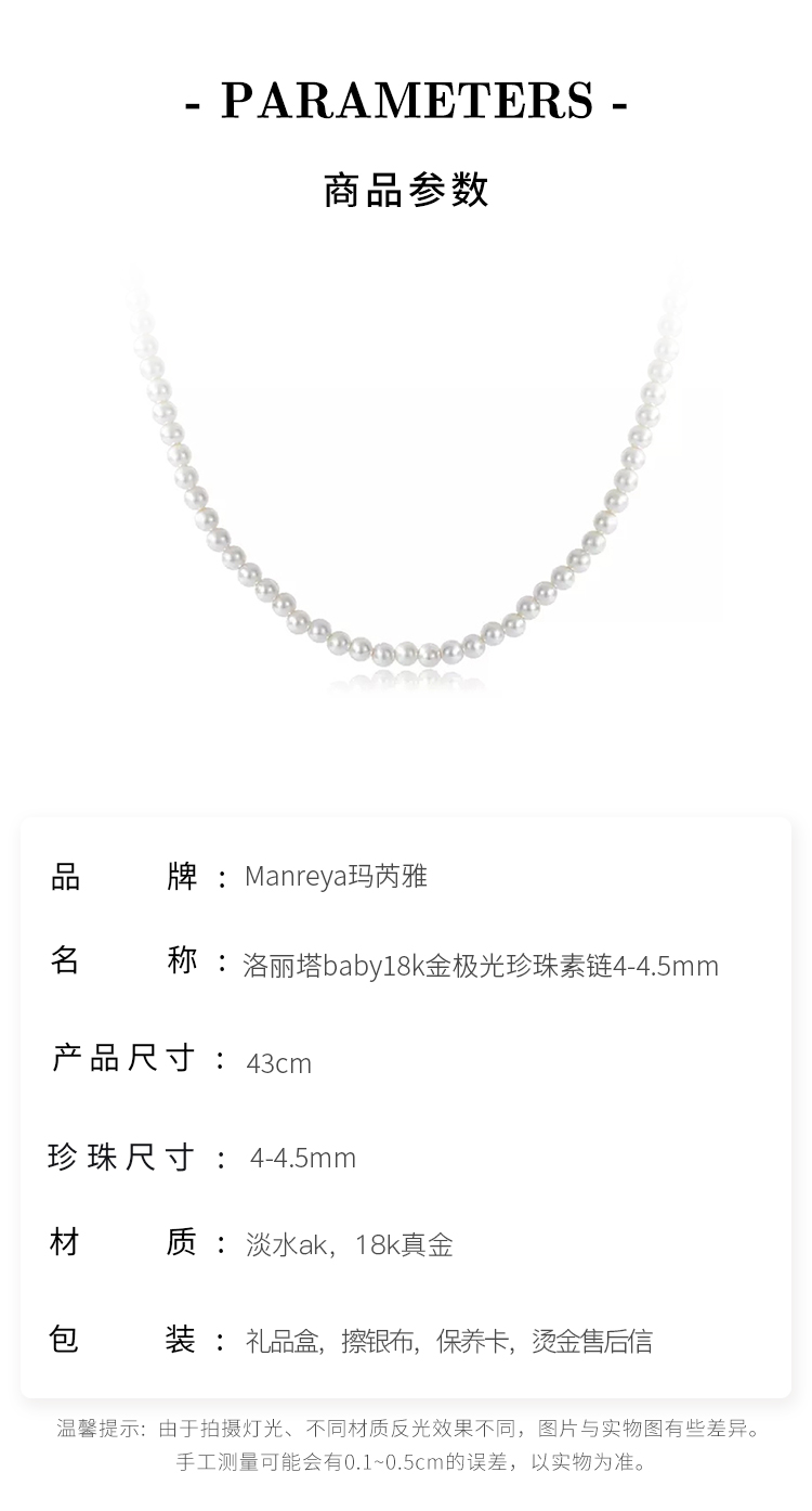 【孤品仅1条】Manreya玛芮雅洛丽塔baby18k金极光珍珠素链4-4.5mm