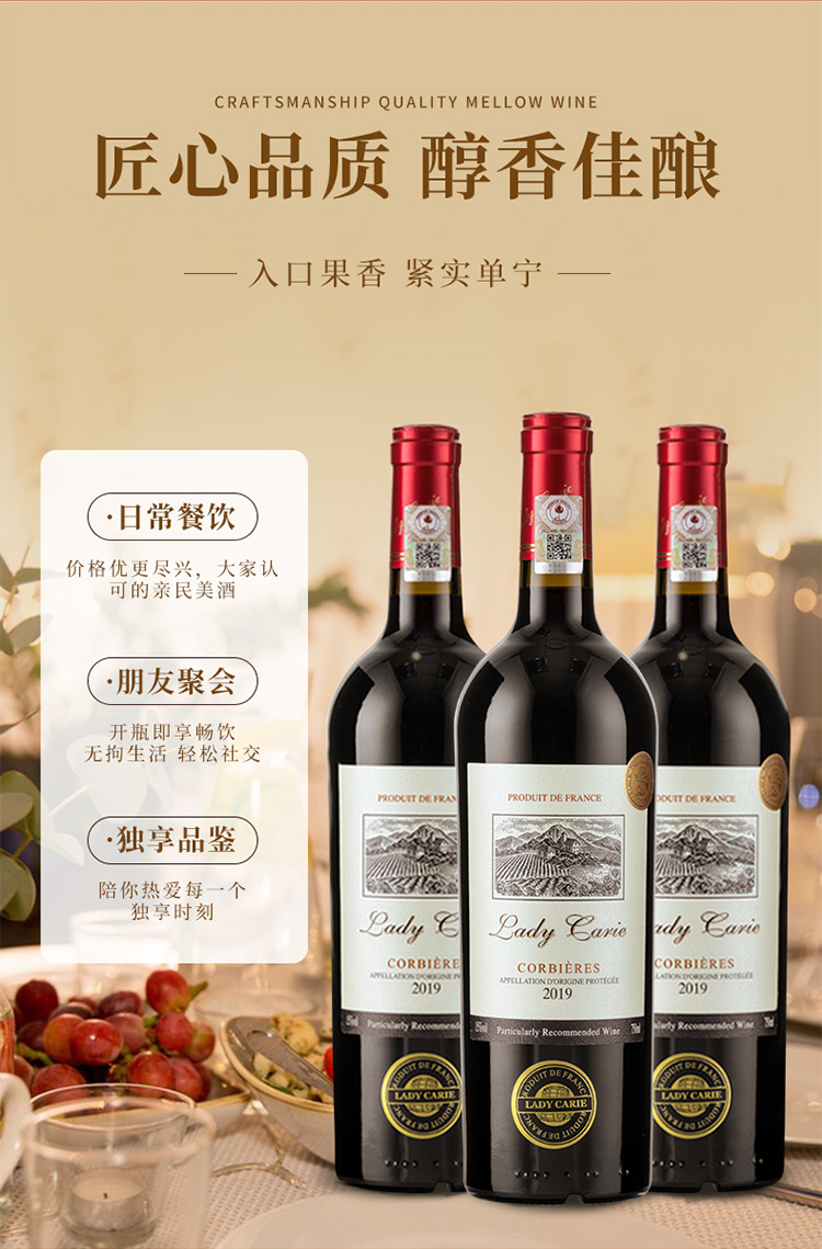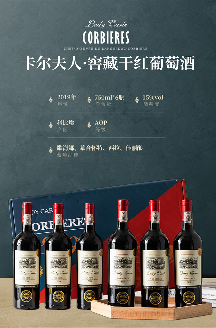 【科比埃AOP】卡尔夫人系列窖藏干红葡萄酒 法国进口 15%vol