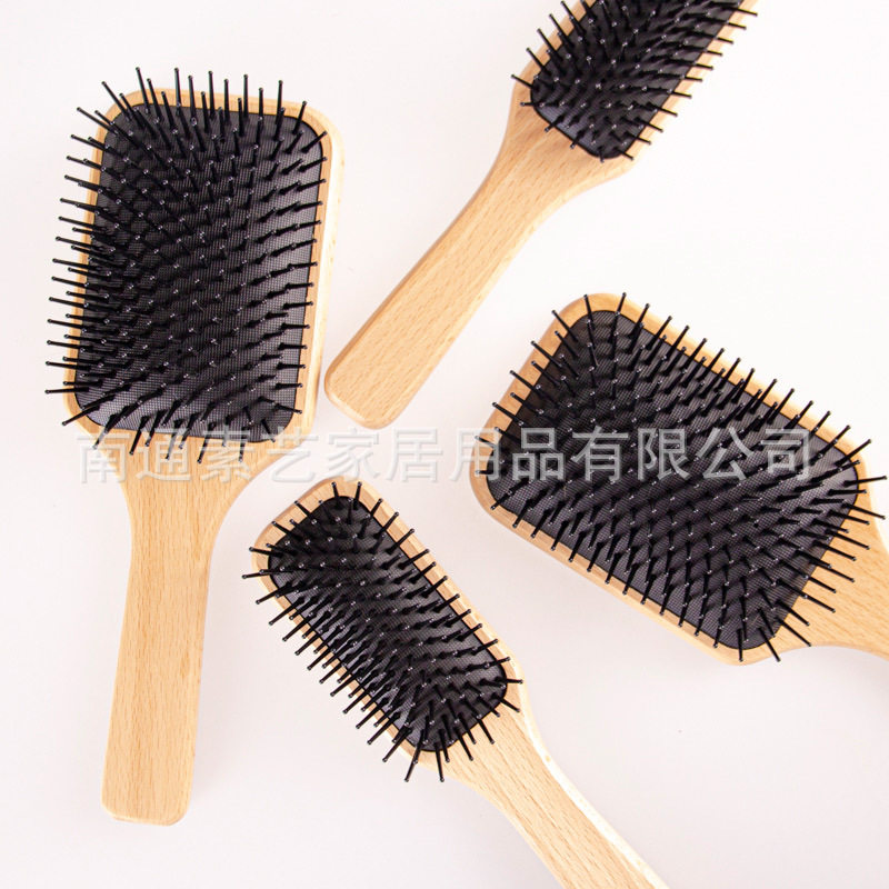 日式无印榉木黑齿梳子良品气囊按摩梳原木梳子简约木质梳木梳黑齿