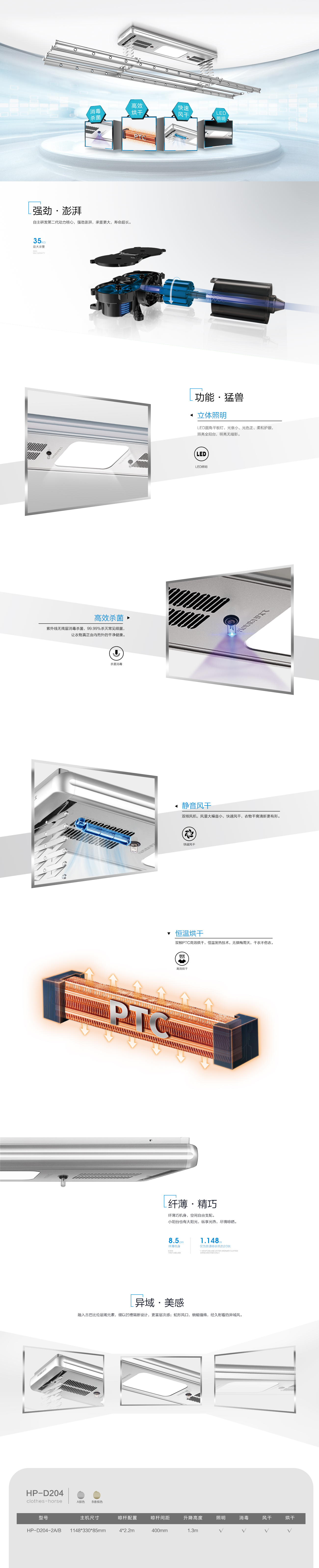 【美居】好太太电动晾衣架HP-D204-2A/2B阳台室内室外风干烘干杀菌升降照明晾衣架