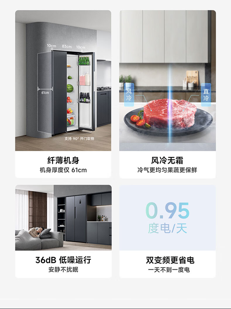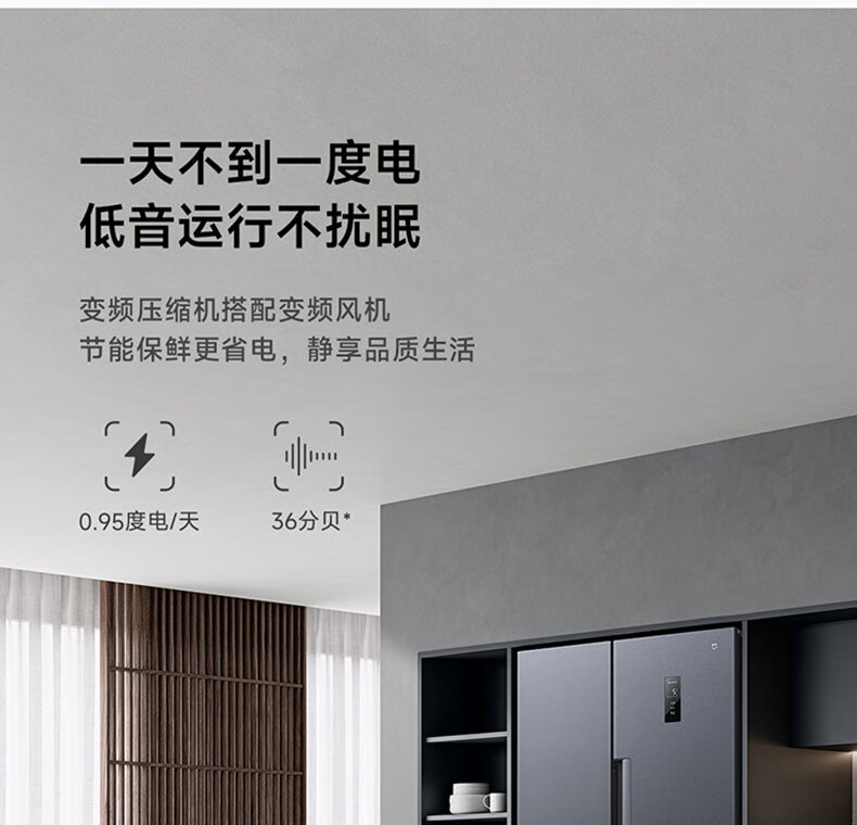 【小米】米家冰箱对开门610L墨羽岩 对开门节能低噪变频 【风冷无霜 银离子净味】610升超大容量