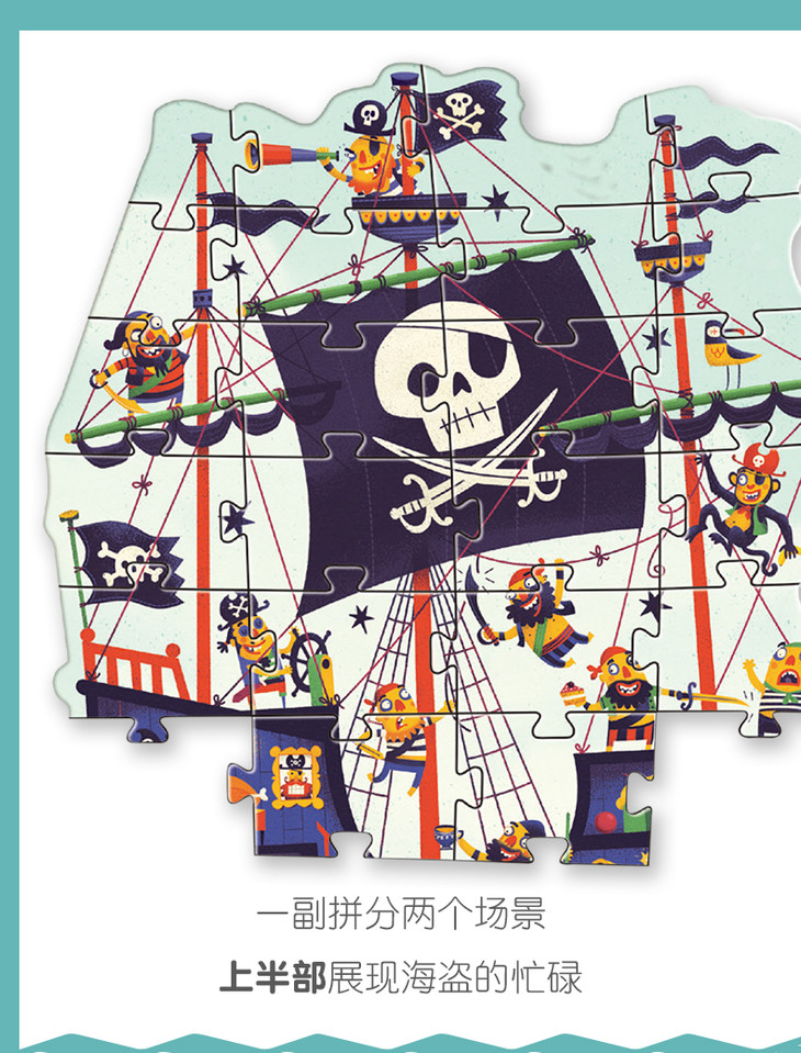 djeco海盗船儿童平图大块36片异形拼图大号智力3-4岁益智男孩玩具
