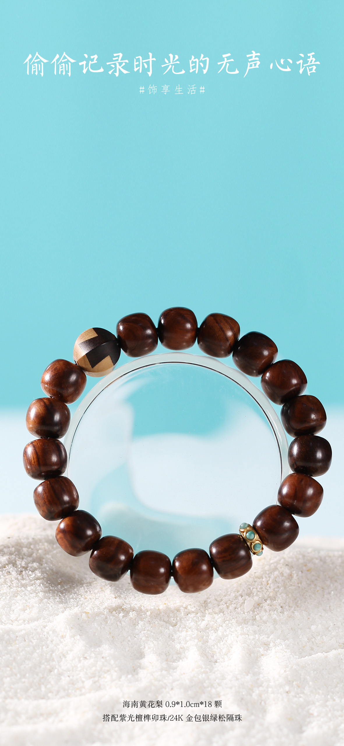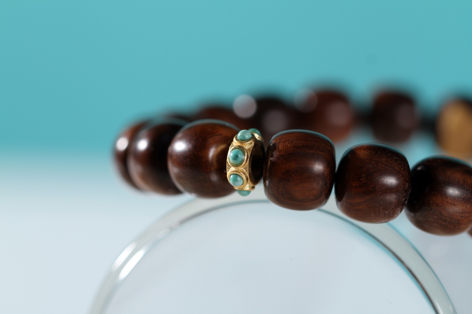 丨搭配紫光檀榫卯珠/24K 金包银绿松隔珠