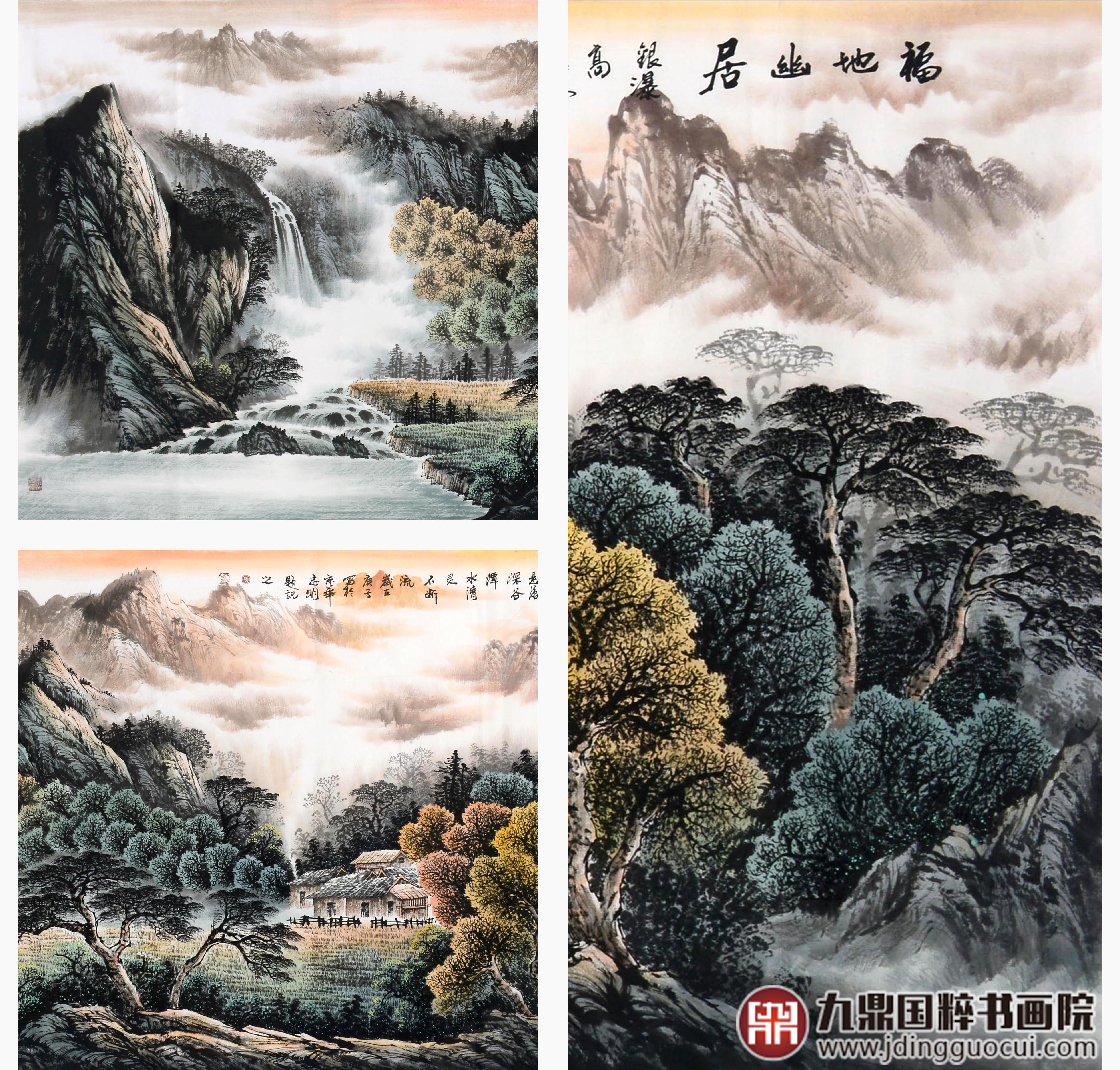 胡宏源《成功人生三大定律》100*50cm*3 花鸟三条屏作品 茶室/餐厅挂画