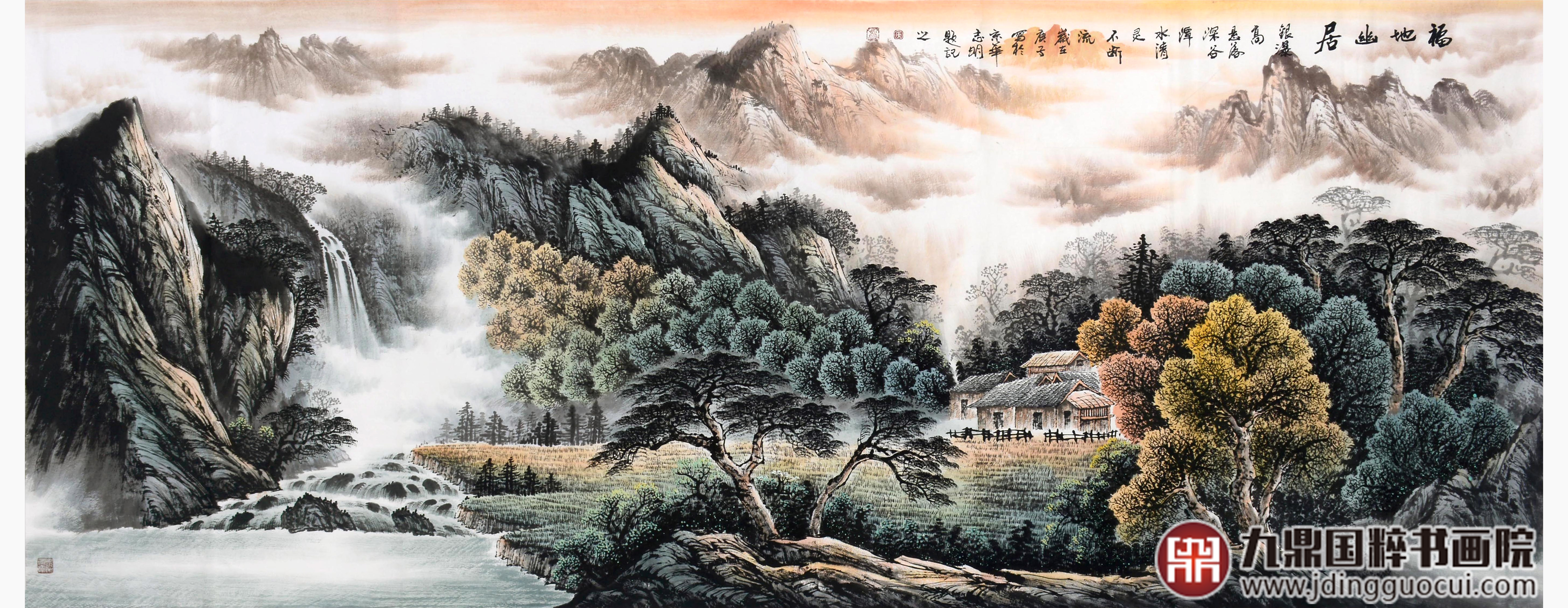 侯志明《福地幽居》98*240cm 山水横幅作品 办公室/客厅挂画