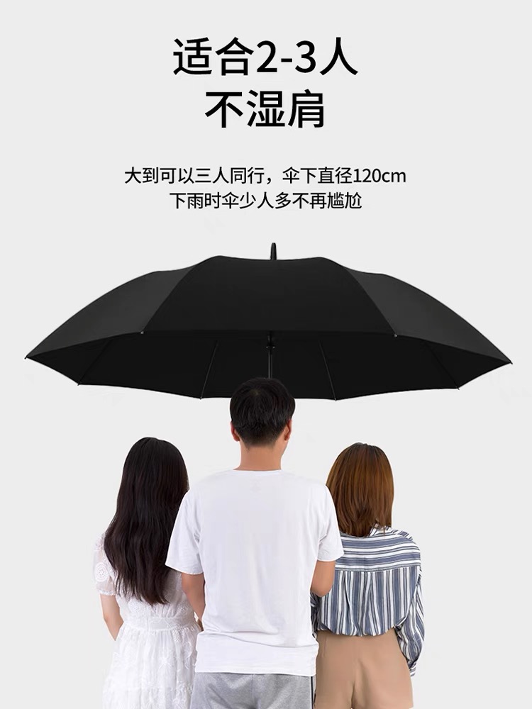 大雨伞 大黑伞 长柄自动长伞太阳伞直杆加大伞下120cm直柄750黑胶商务晴雨伞 1把