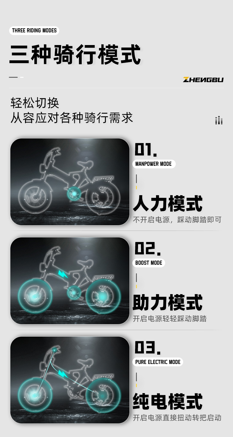 正步越野电动车K6F 可折叠电动自行车助力山地车变速便携超轻骑行