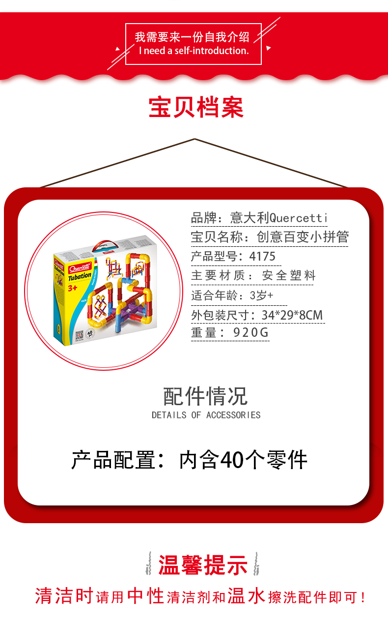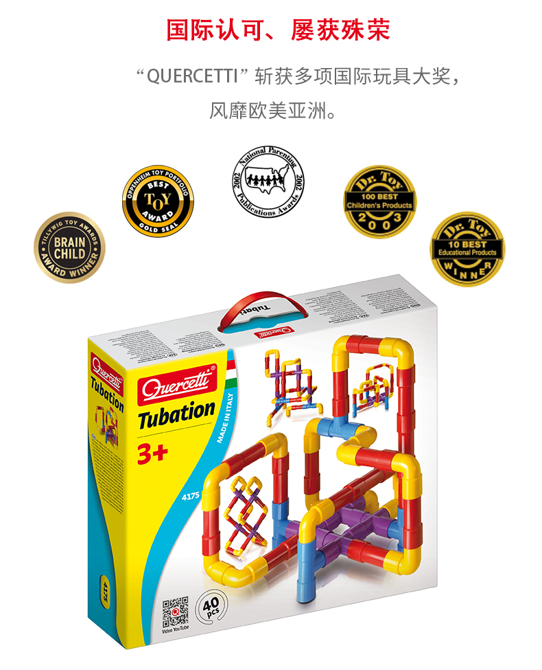 Quercetti启迪 构建系列 创意百变小拼管 Q4175 3+岁 意大利