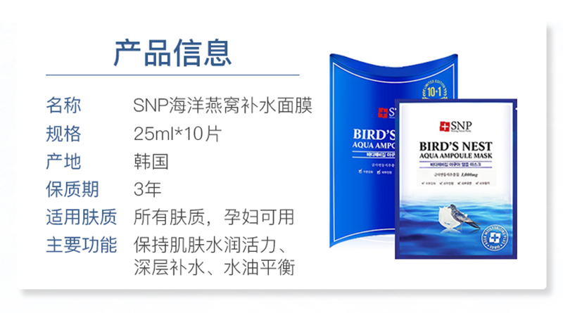 SNP 海洋燕窝补水安瓶精华面膜25ml 10片/盒