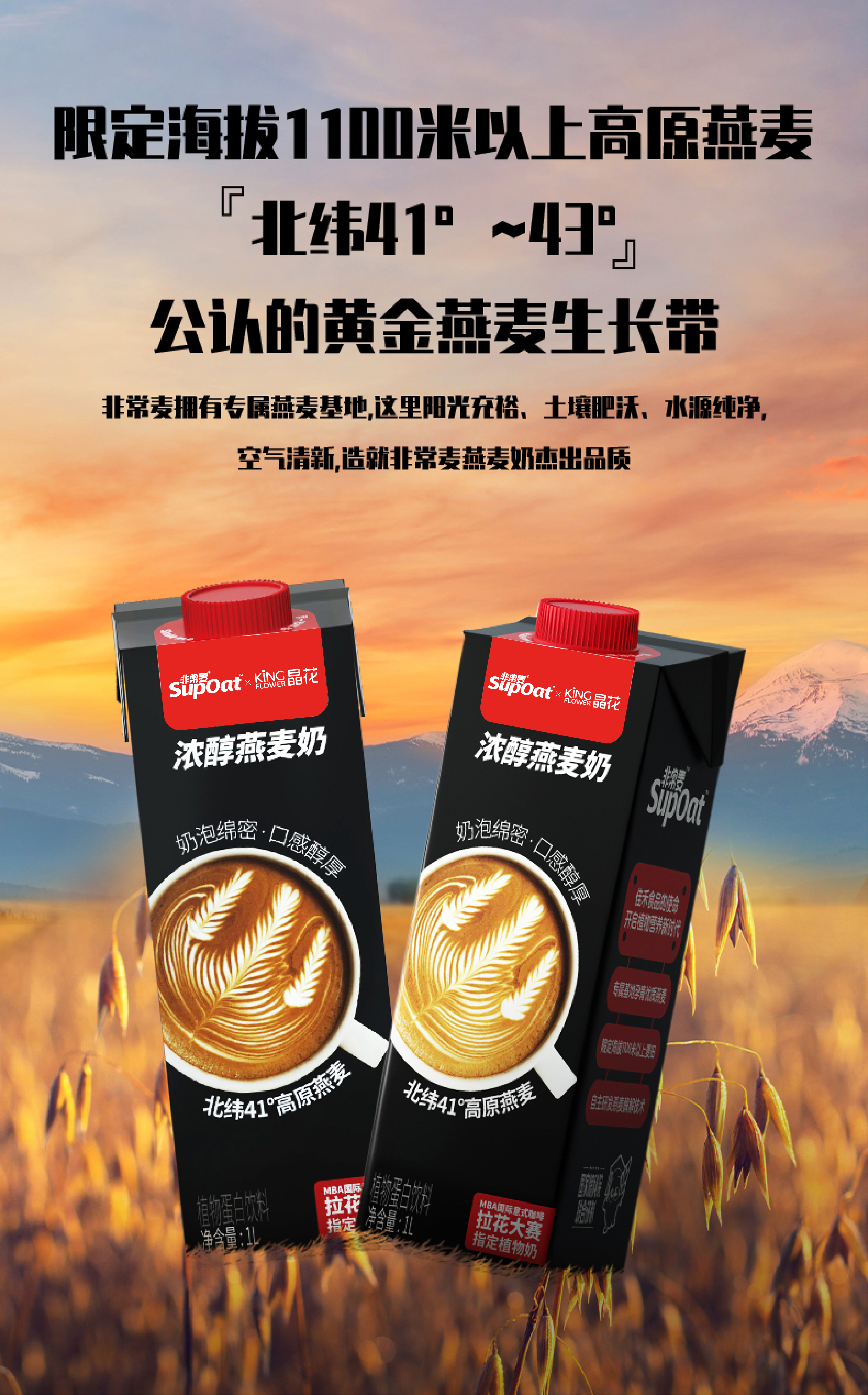 【非常麦&晶花】浓醇燕麦奶 1L/盒*6盒(品牌直发)