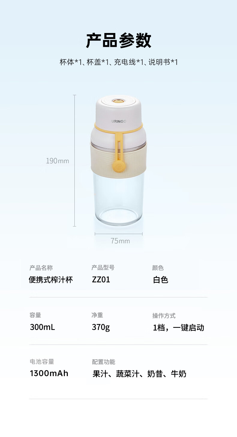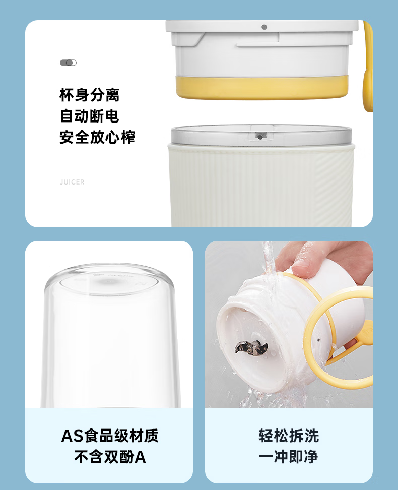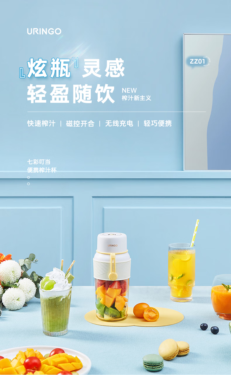 七彩叮当(QICAIDINGDANG) 无线榨汁机小型便携式家用小型果汁杯多功能随性迷你榨汁杯 便携 无线 1300mAh电池