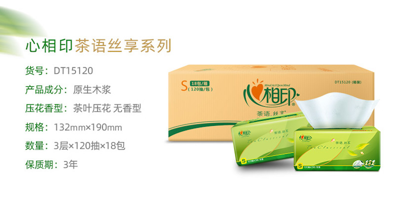 心相印茶语丝享系列120抽18包装三层塑装纸面巾
