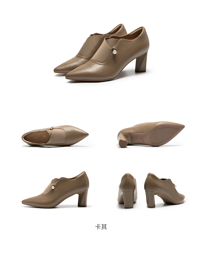 【静音系列】千百度粗高跟踝靴女秋新款短靴深口单鞋A471694/A25471694