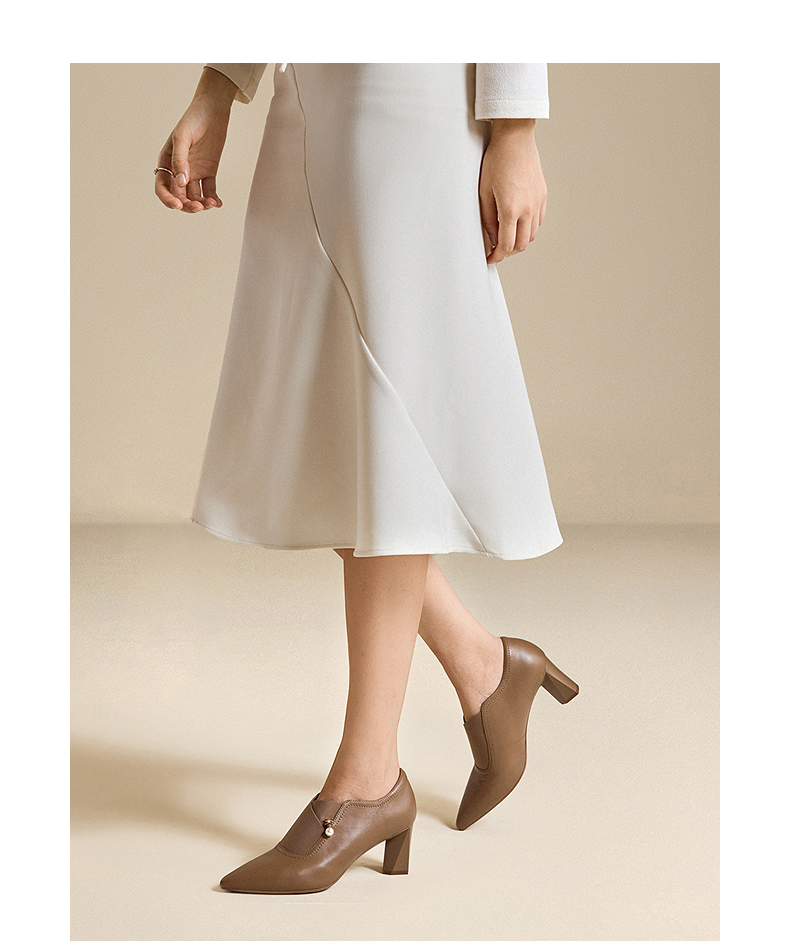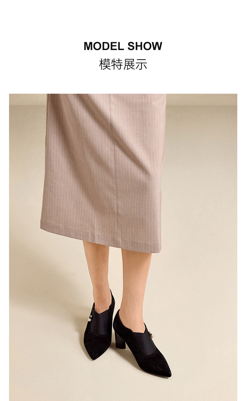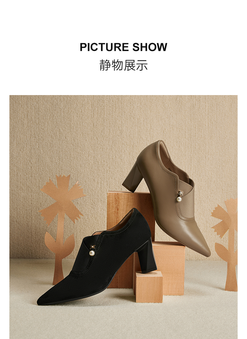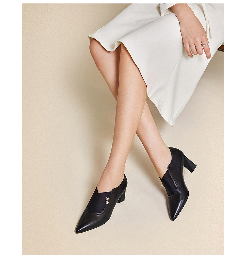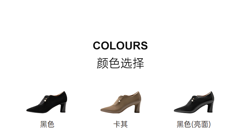 【静音系列】千百度粗高跟鞋女款褶皱羊皮玛丽珍鞋A25184506