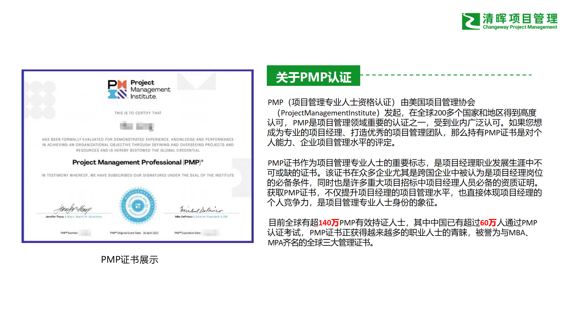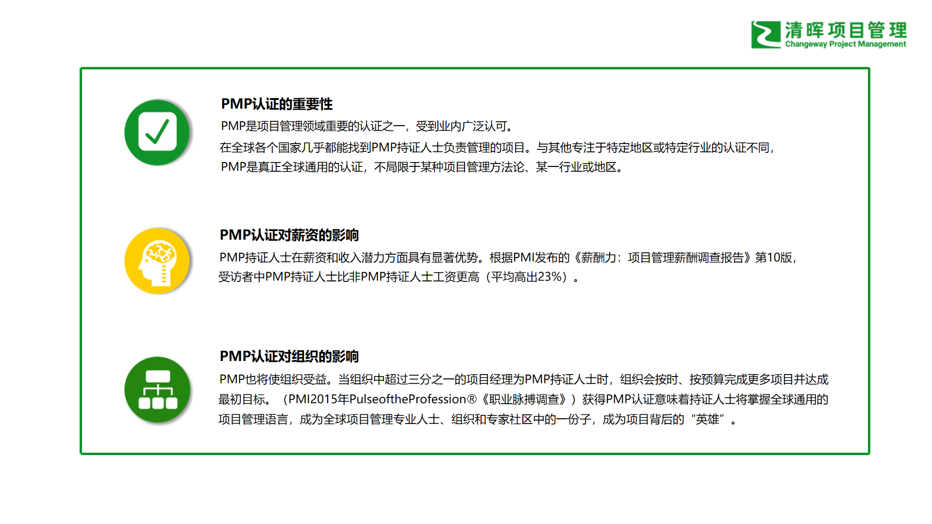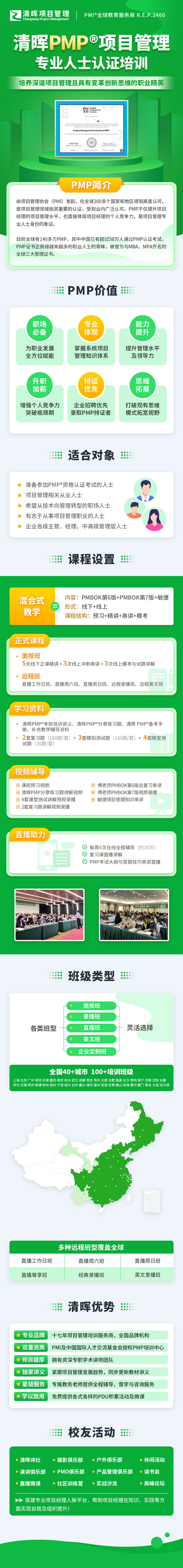 注意:PMP报考条件有一项为:35小时项目管理学习证明,而这个需要通过项目管理协会PMI官方授权的REP机构提供,清晖项目管理作为PMI注册全球教育培训(Global R.E.P. No.2460)服务商