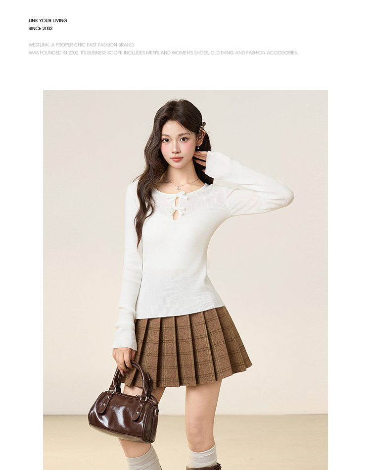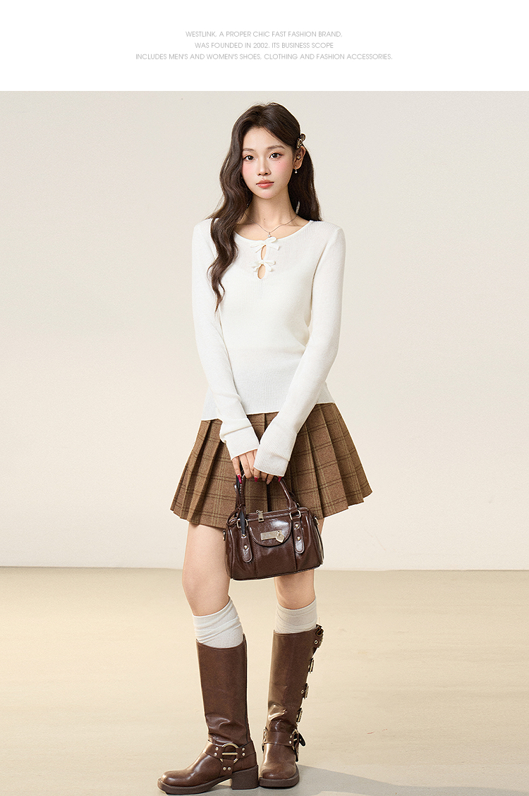 西遇内搭打底衫女2026年春季新慵懒镂空蝴蝶结美式纯色修身针织衫SS060054