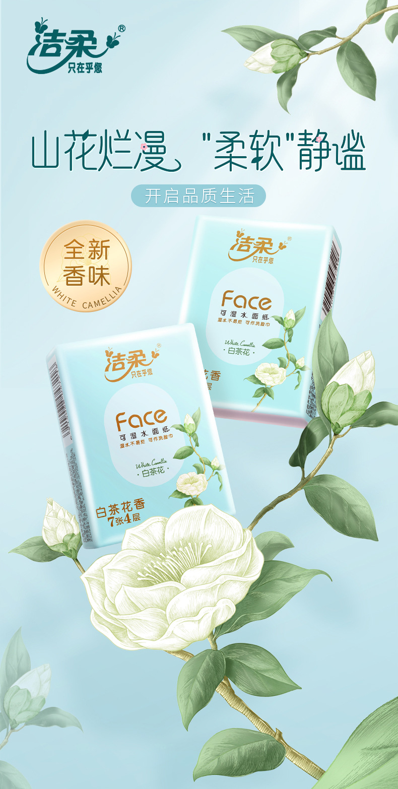 「9.9包邮!便携小包」洁柔Face手帕纸 餐巾纸可湿水面巾纸便携式随身装小包居家日用纸巾