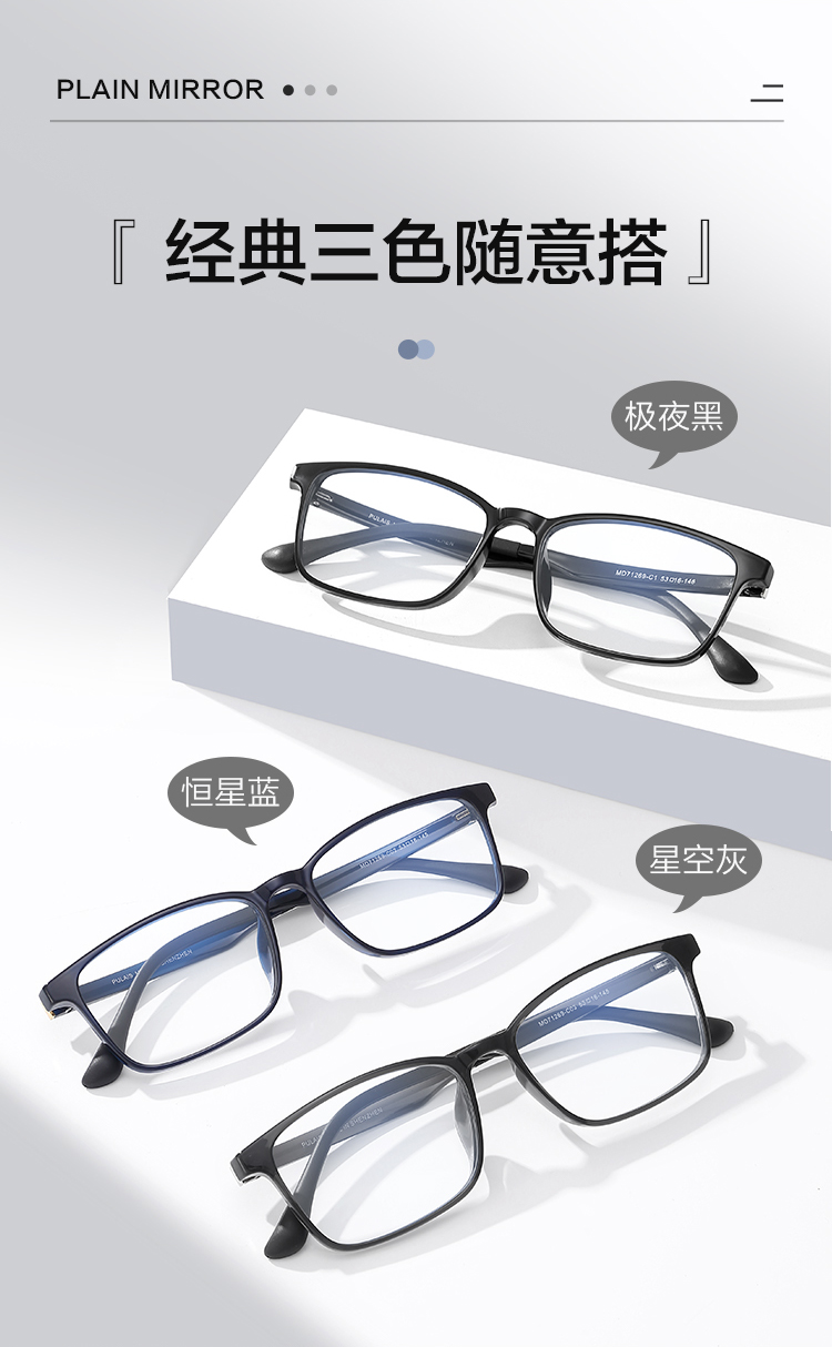 普莱斯MD71269光学镜框 气质黑框潮流出街 男女通用 三色可选 TR+硅胶材质