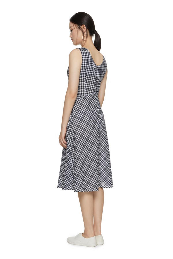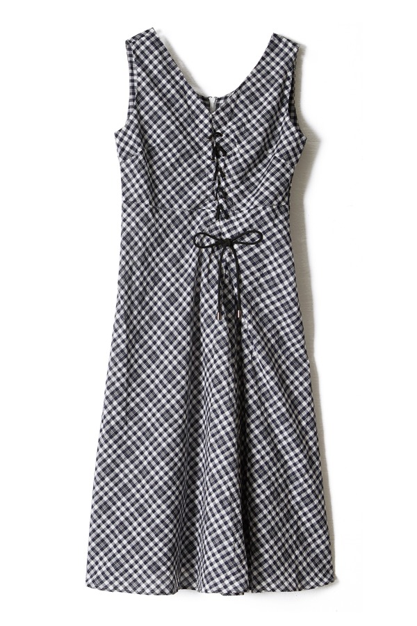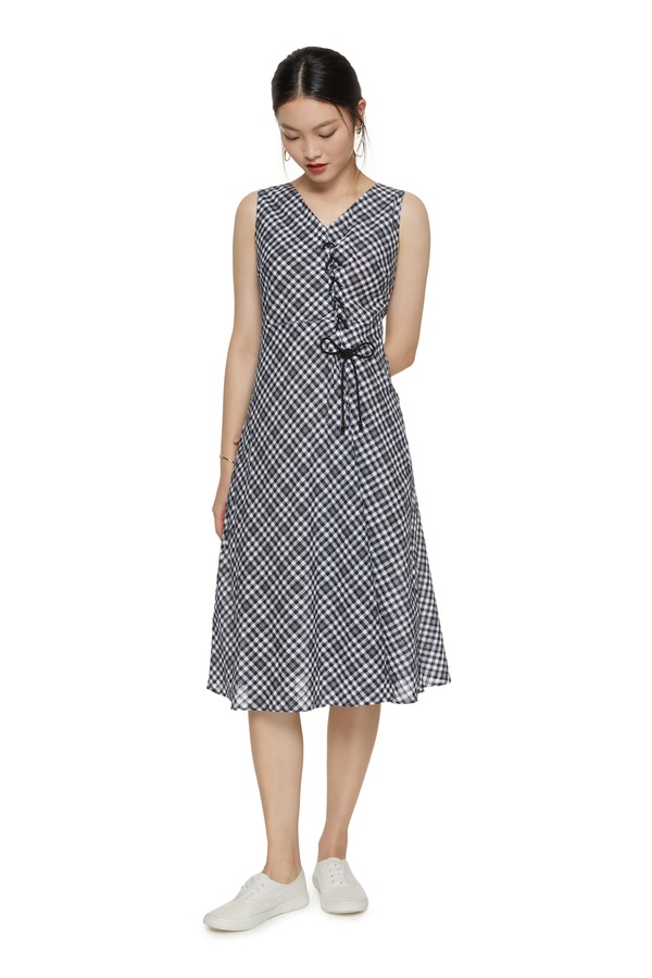SUMMER & SAGE 绑带设计无袖格纹连衣裙 7045