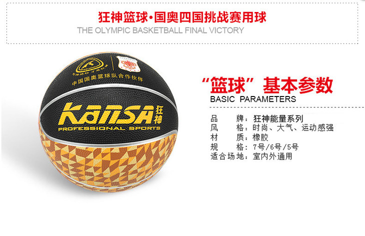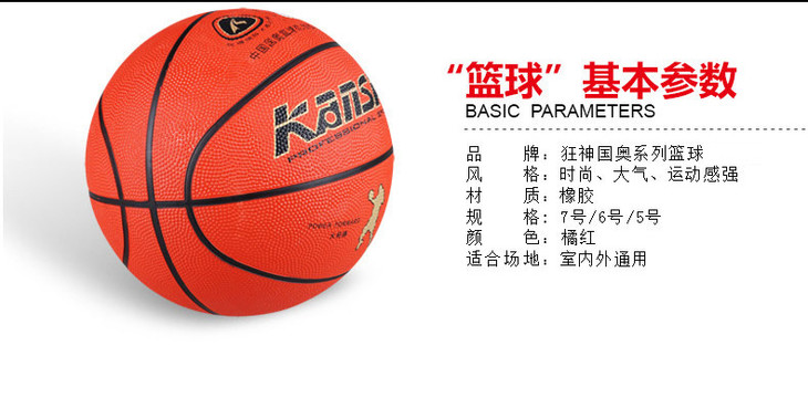 狂神篮球 5号橘高弹力橡胶加厚儿童教学训练0760