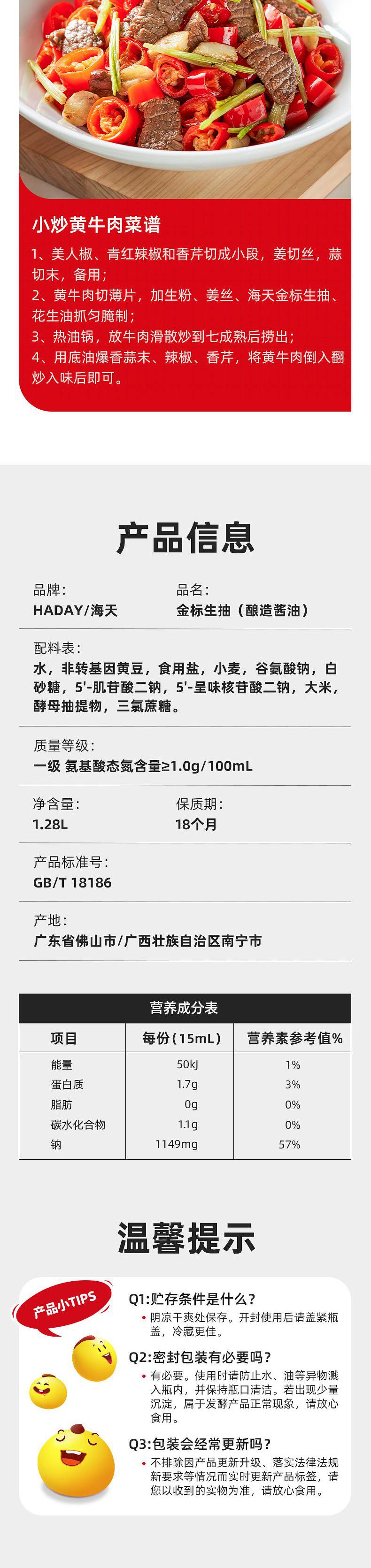 海天 金标生抽1.28L*1瓶新鲜健康美味 KJDF-20230428-03