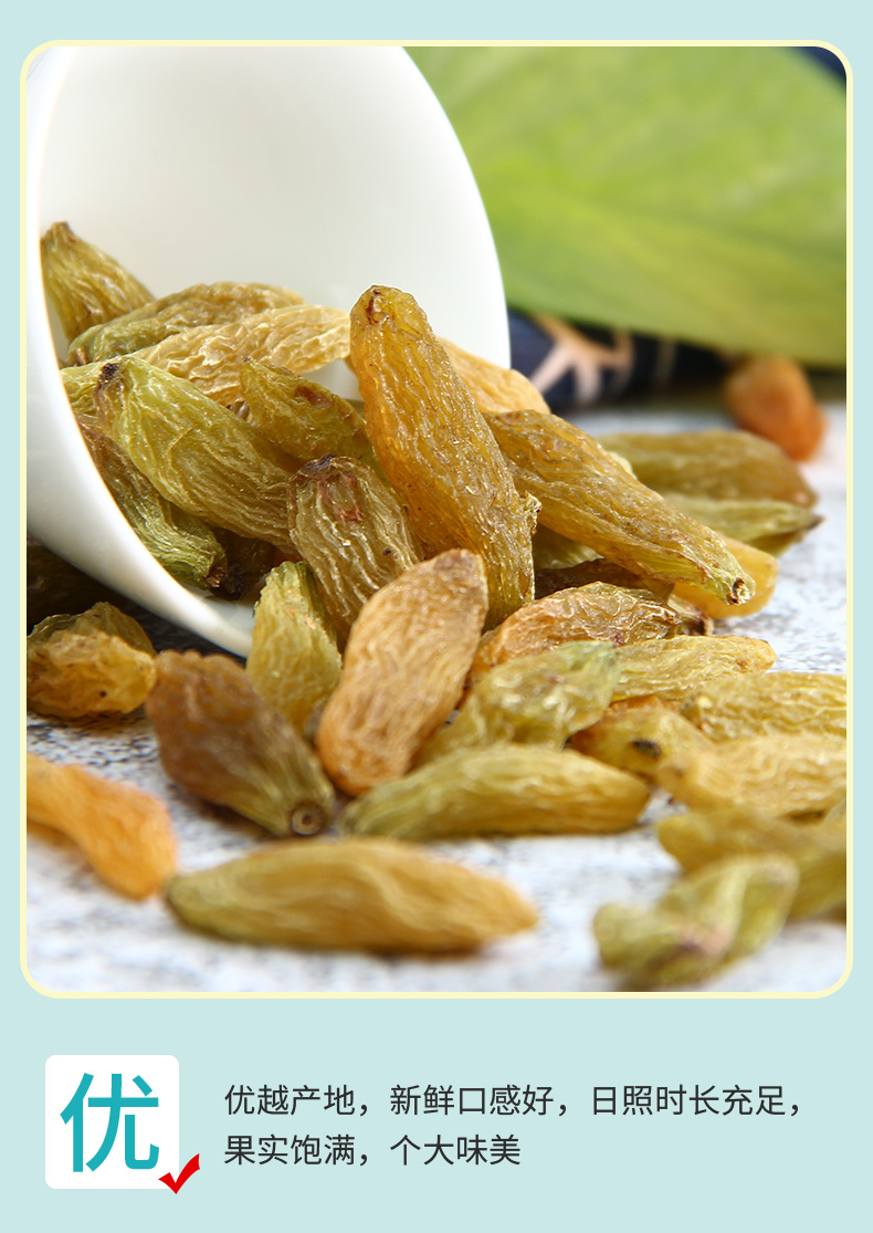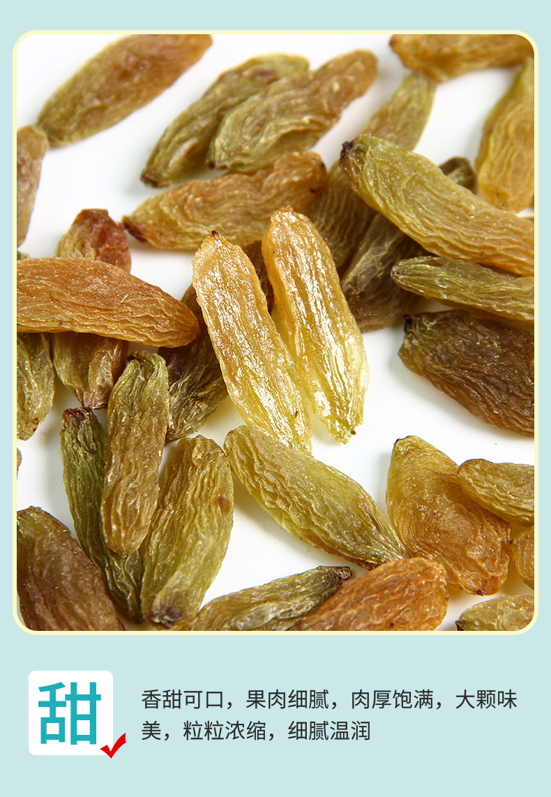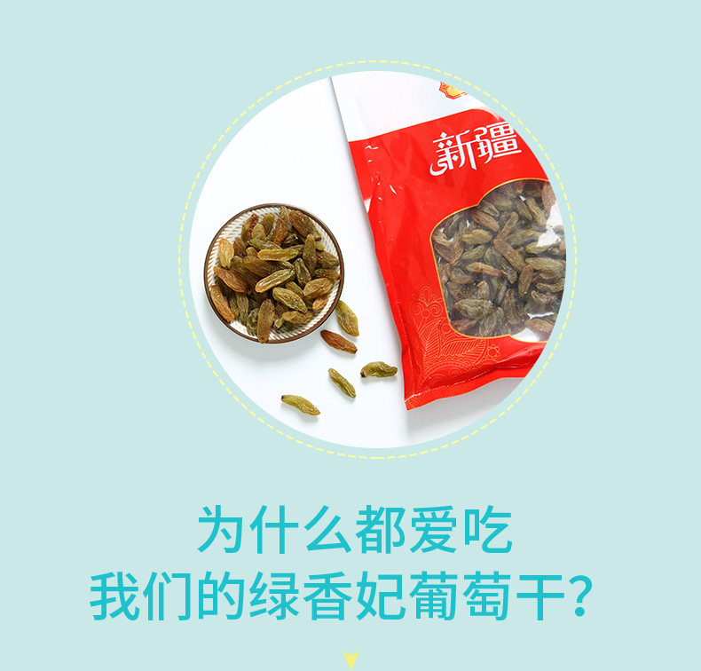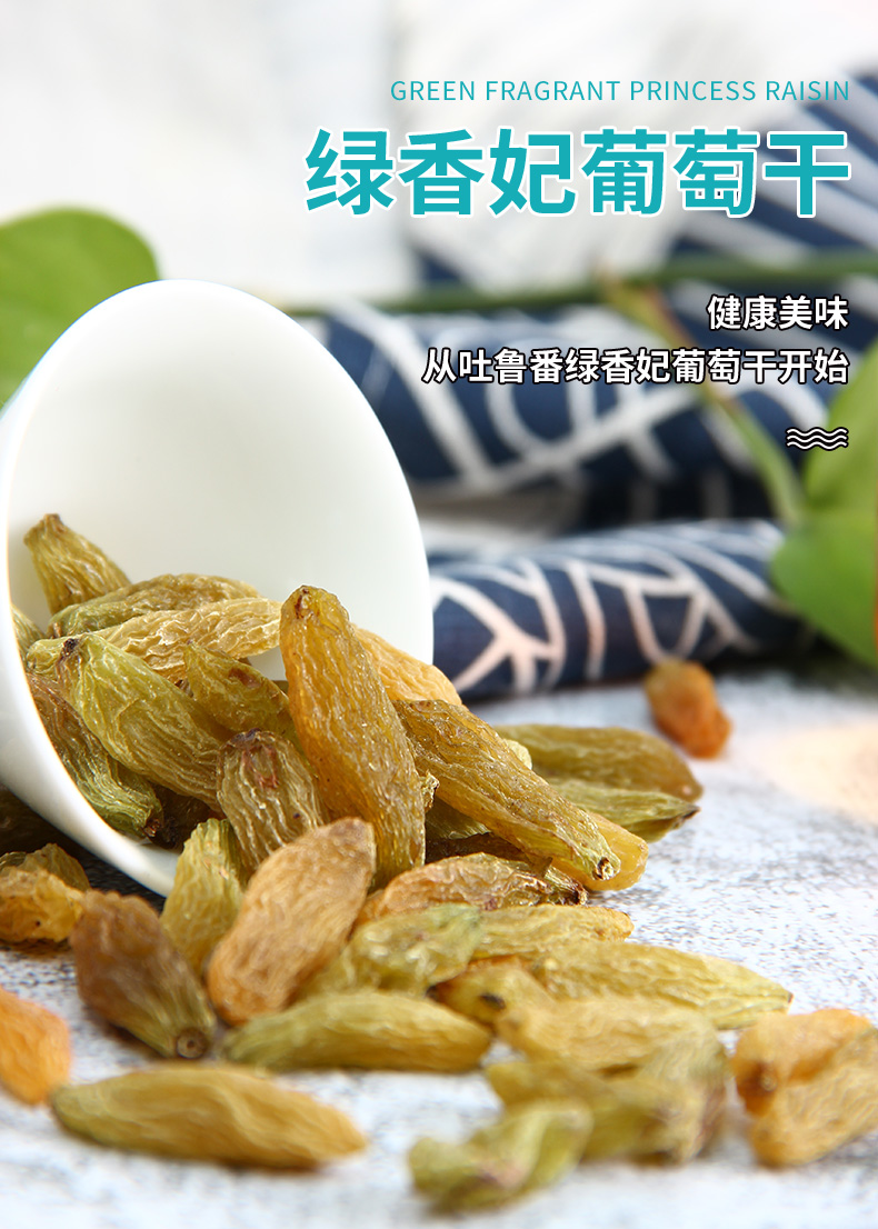 【自营】天山公主新疆特产特级大颗粒无籽休闲零食绿香妃葡萄干500克