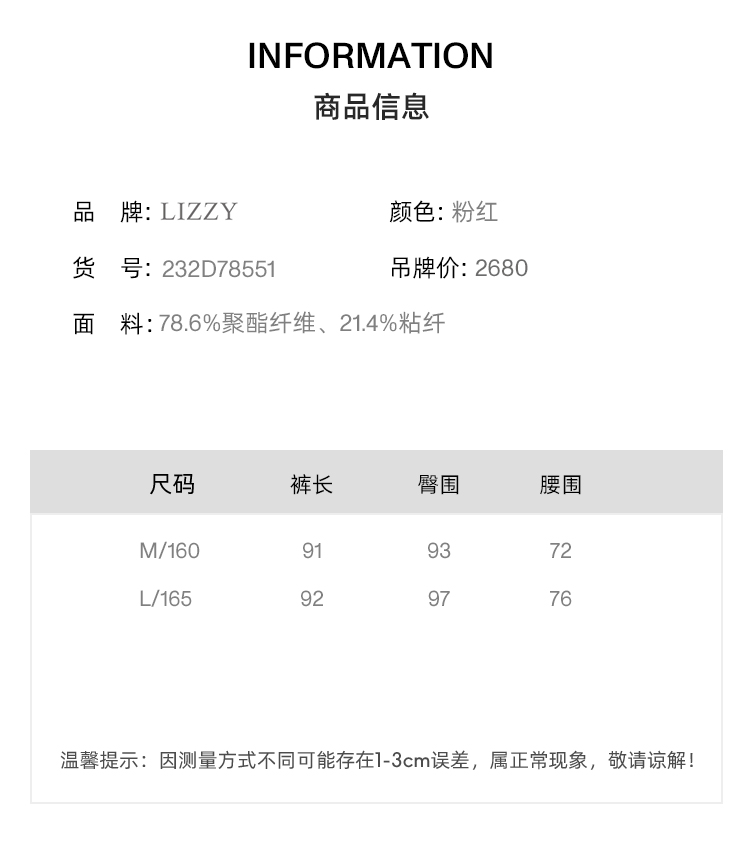 | 材质成分: 聚酯纤维78.6% 粘胶纤维(粘纤)21.4% | 销售渠道类型: 商场同款(线上线下都销售) |